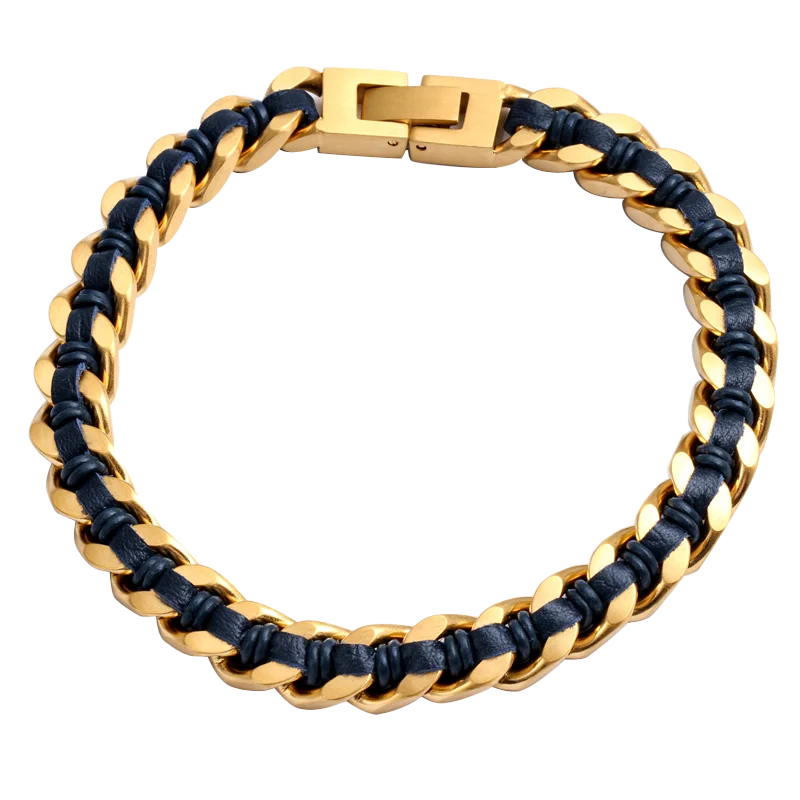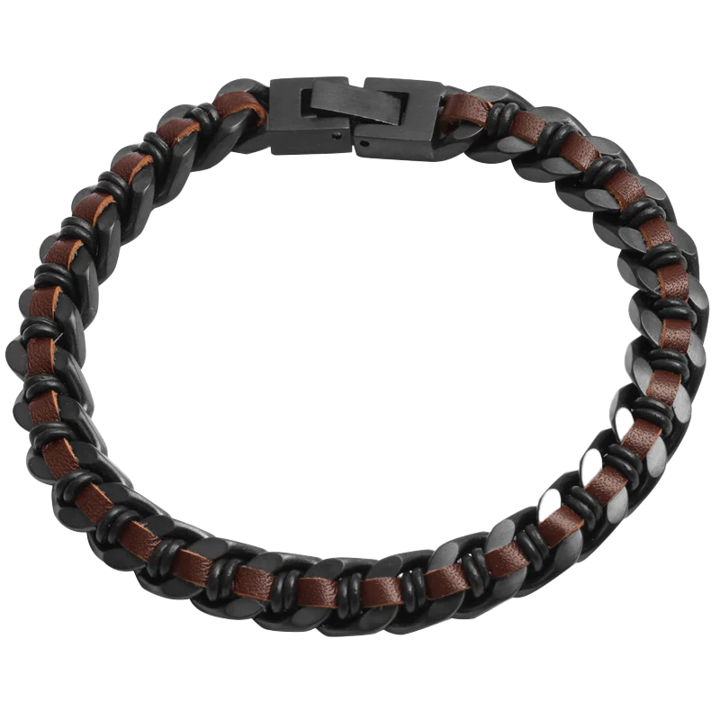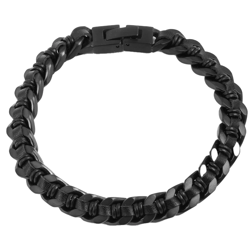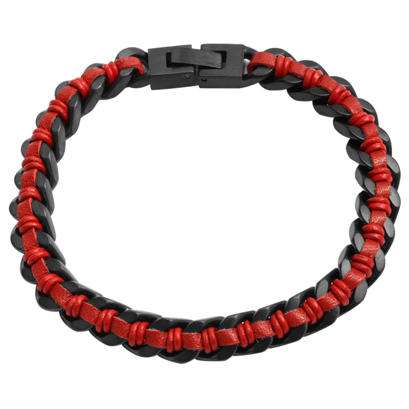Tizti Jewelry Wholesale Non Tarnish Men Black Stainless Steel Cuban Chain Various Colors Braided Leather Bracelet for Men