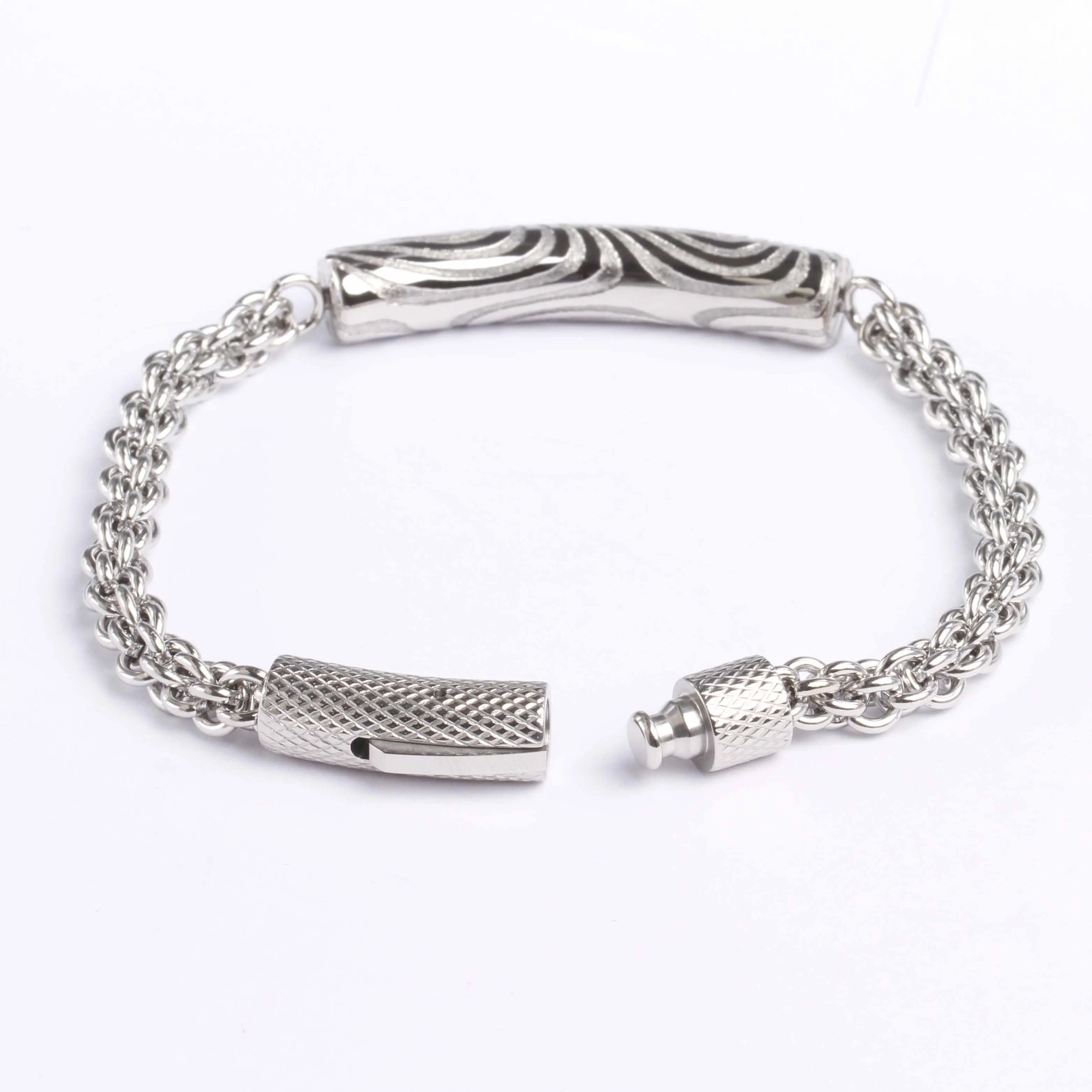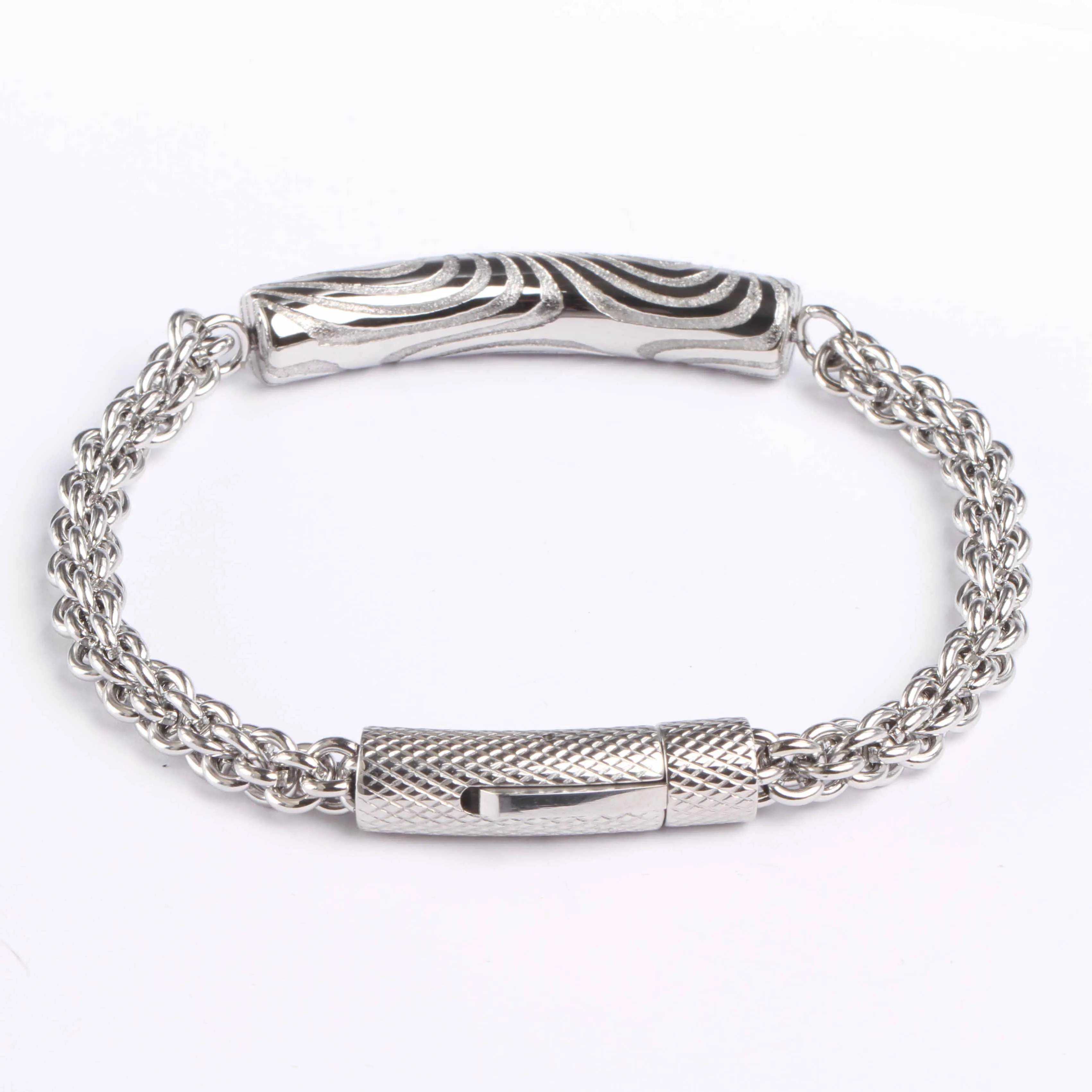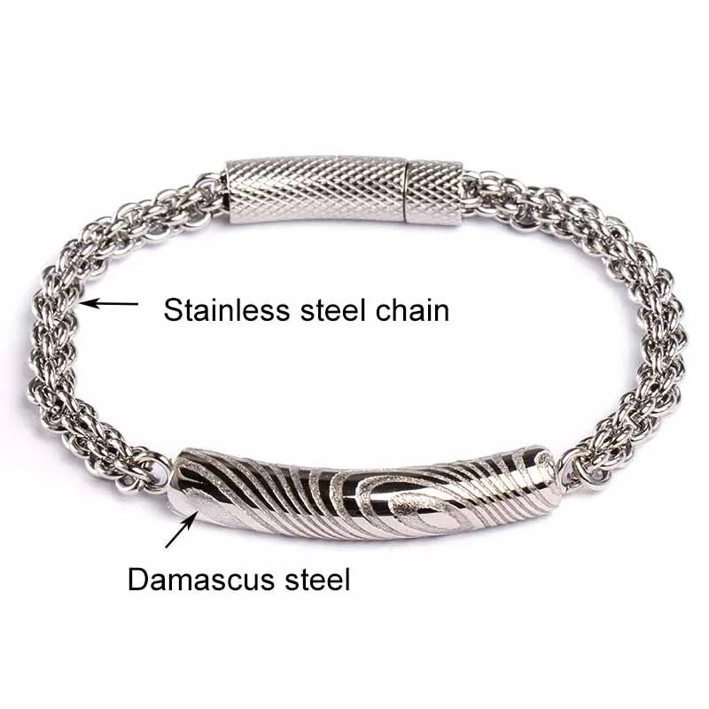 Silver Damascus Id Engravable Tenis Damascus Stainless Steel Bracelets for Men Designs