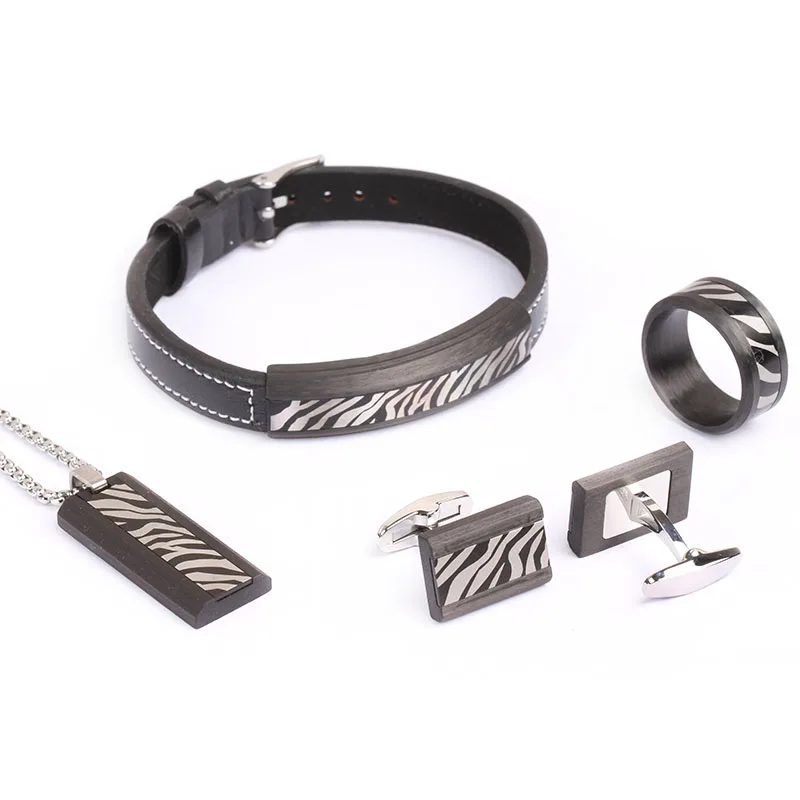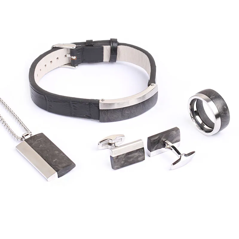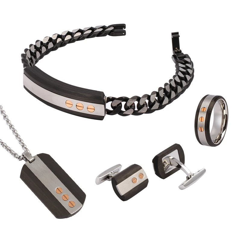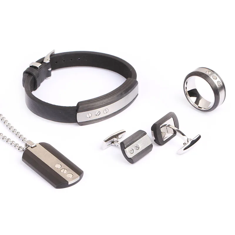 Tizti Wholesales Men's Jewelry Stainless Steel Gold Plated Carbon Fiber Jewelry Set