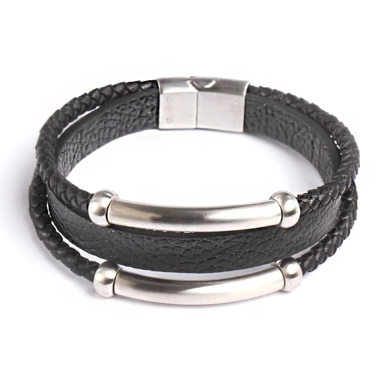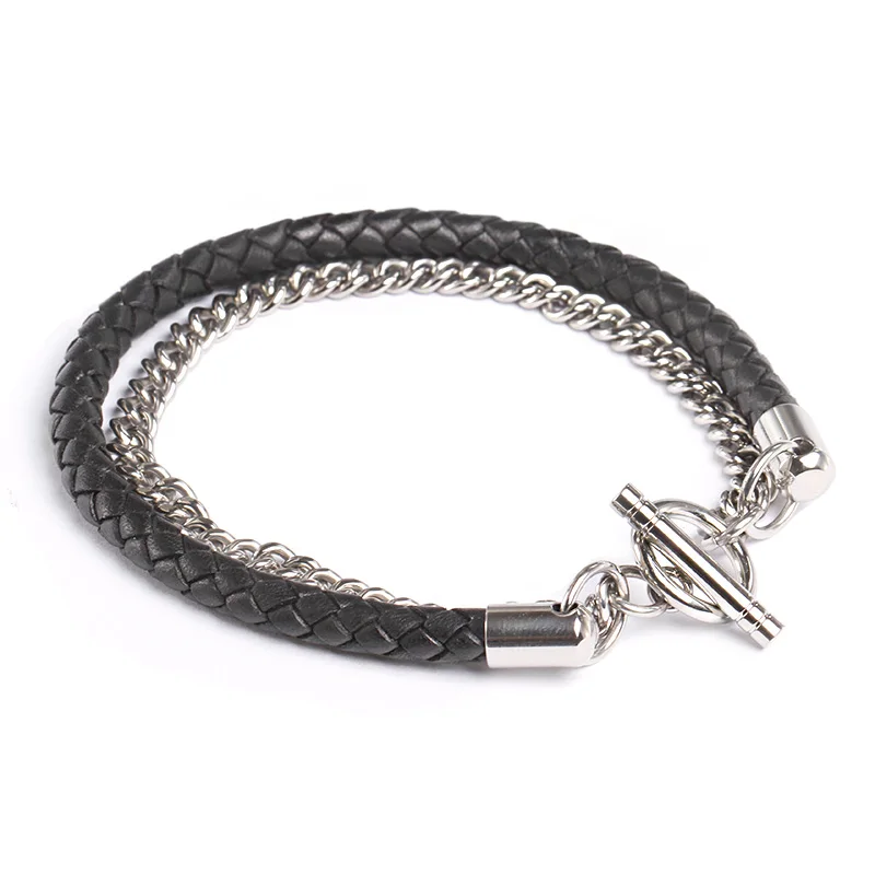 Trendy Genuine Leather Bracelets Men Stainless Steel Multilayer Braided Rope Bracelets for Male Female Bracelets Jewelry