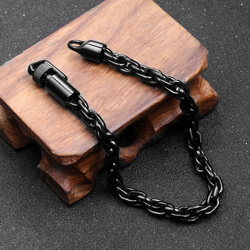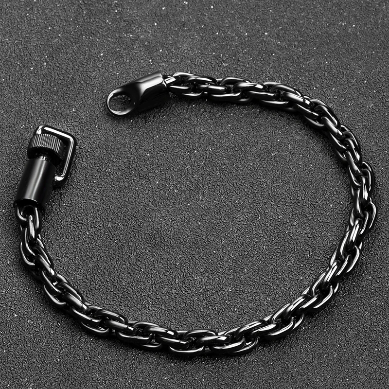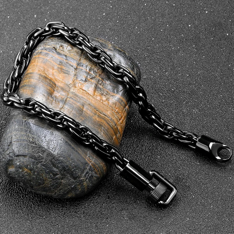 High-Polished 6mm Men's Stainless Steel Chain Bracelet Black Plated Fashion Link Jewelry
