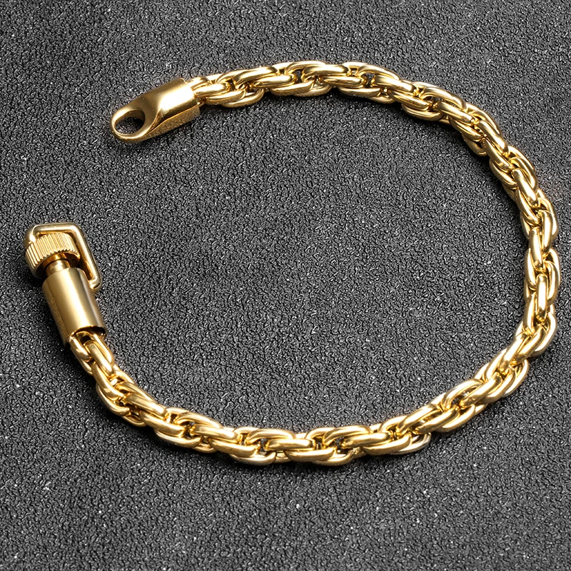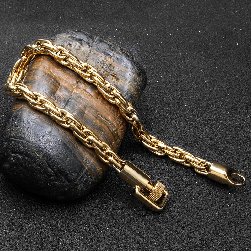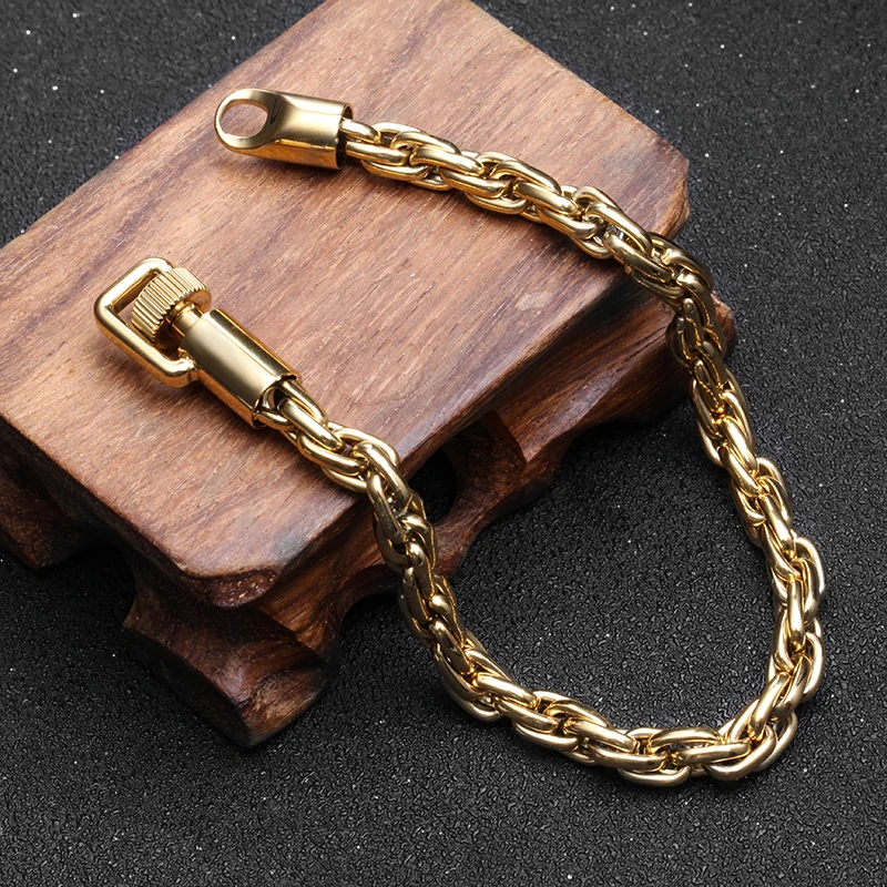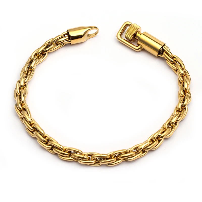 Men's Trendy Stainless Steel Chain Bracelet 6mm Gold Plated Hook Closure High Polished Link Bracelet for Gift