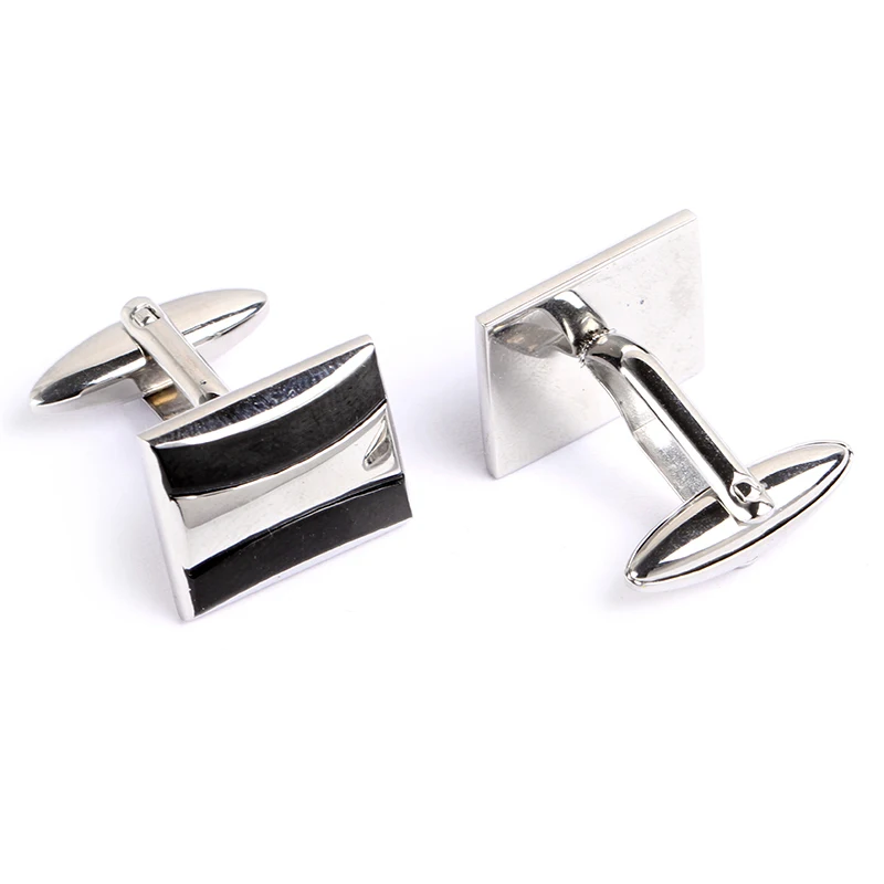 Wedding Engagement Party Anniversary Gift Set Men's Fashion Black Onyx Inlay Rectangular Stainless Steel Cufflinks
