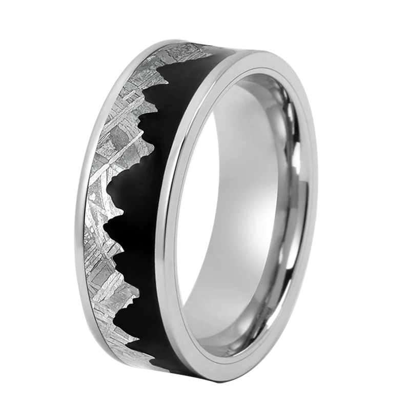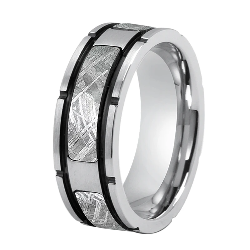 8MM Genuine Antler &Meteorite Inlay Tungsten Wedding Ring Mens Silver Wedding Rings