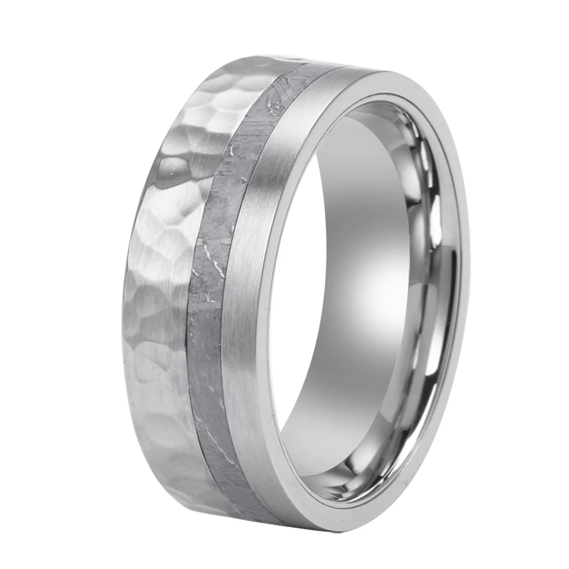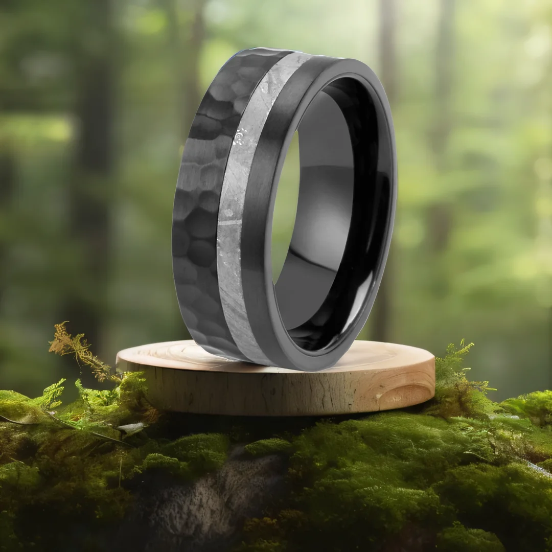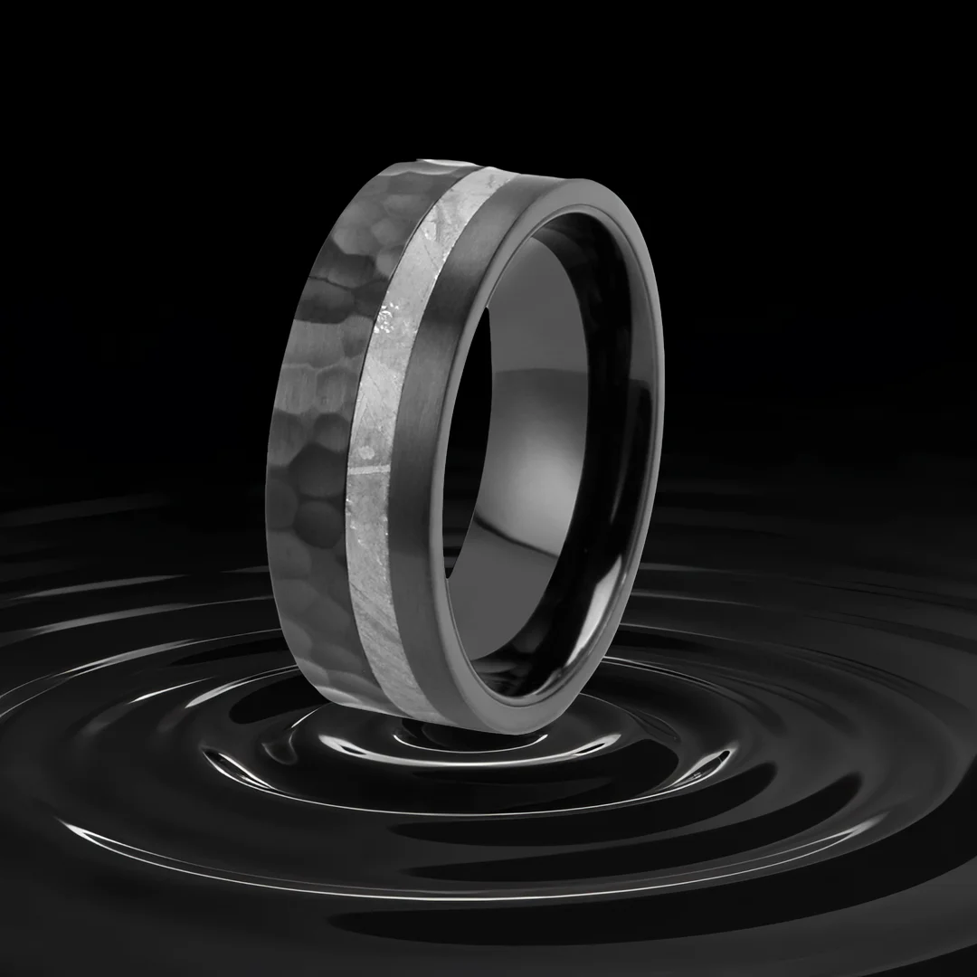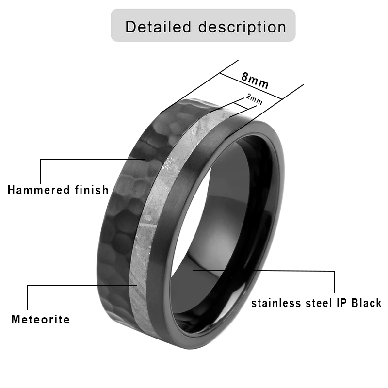 Tizti Jewelry Factory Sale 8mm Brushed Hammered Black Titanium Meteorite Men's Titanium Wedding Bands
