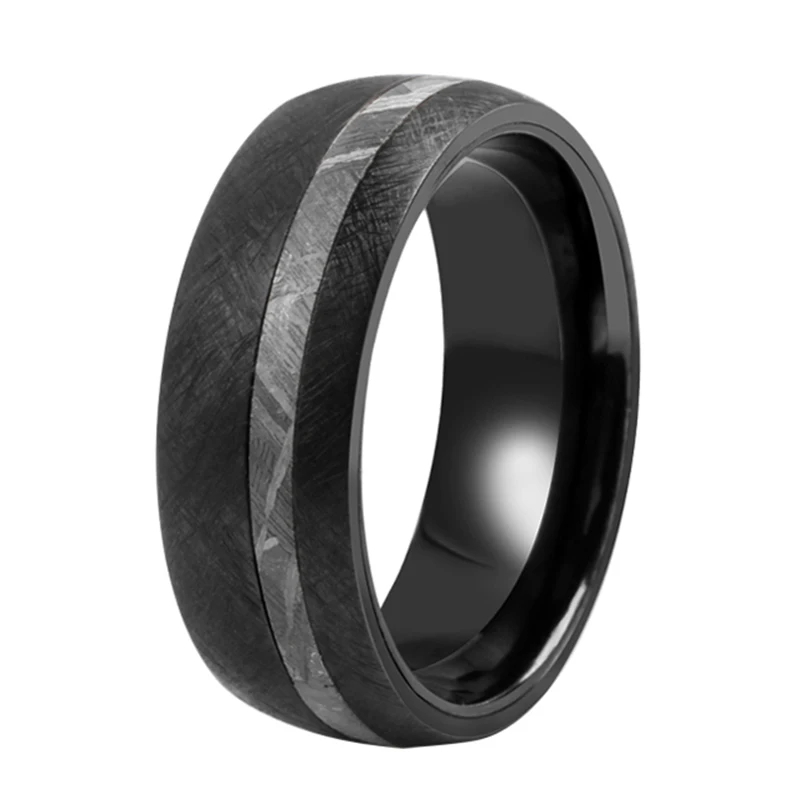 Tizti Jewelry 8mm Black Hammered Real Meteorite Centre Inlay Tungsten Carbide Wedding Rings for Men