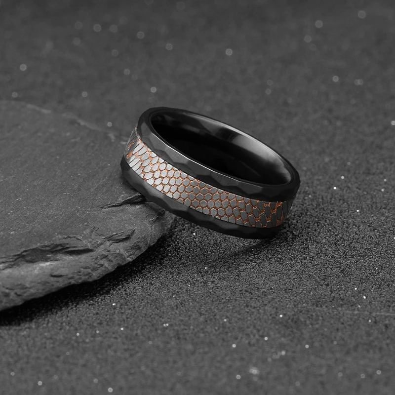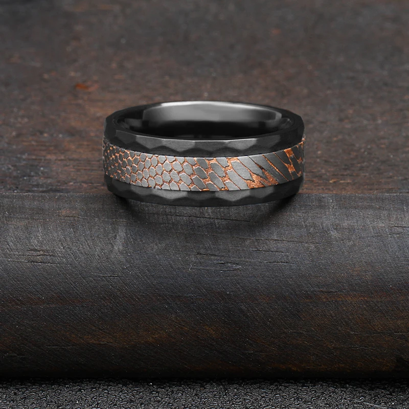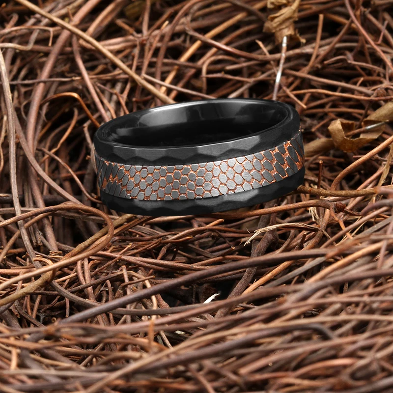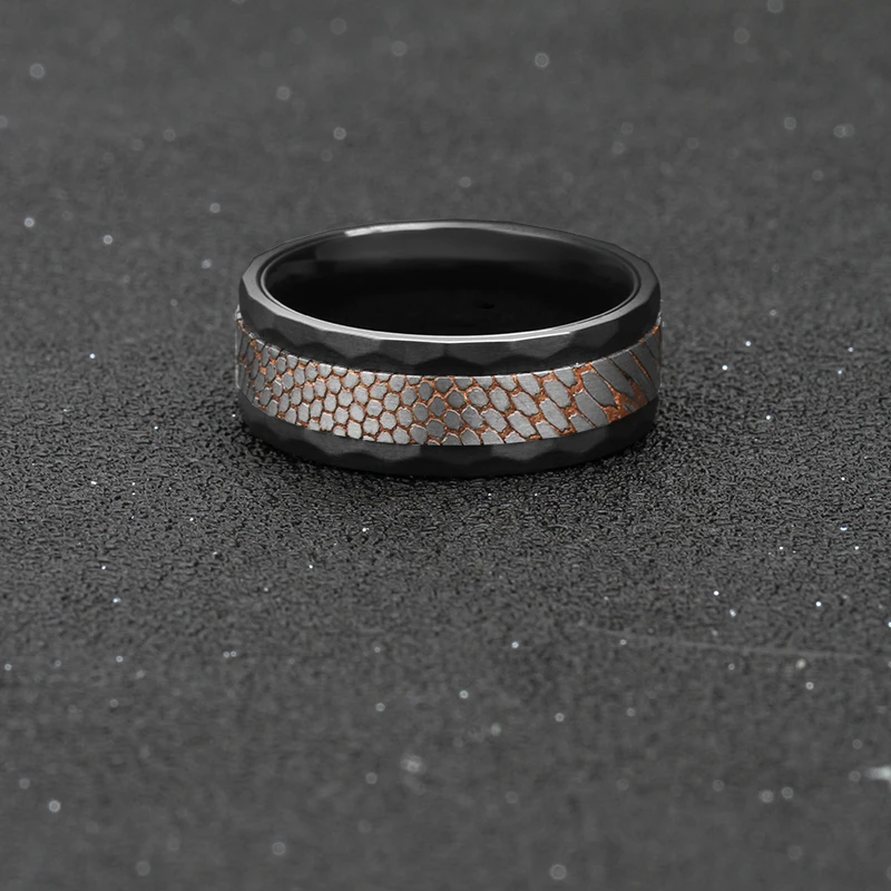 TIZTI 8mm Hammered Ring Tungsten Carbide Ring Black Zirconium Facet Edge Superconductor Ring