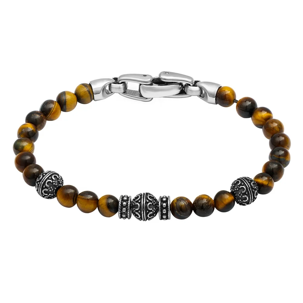 Tizti Fashion Men Jewelry High Quality Stainless Steel Nature Stone Bead Tiger Eye Onyx Lapis String Bracelets