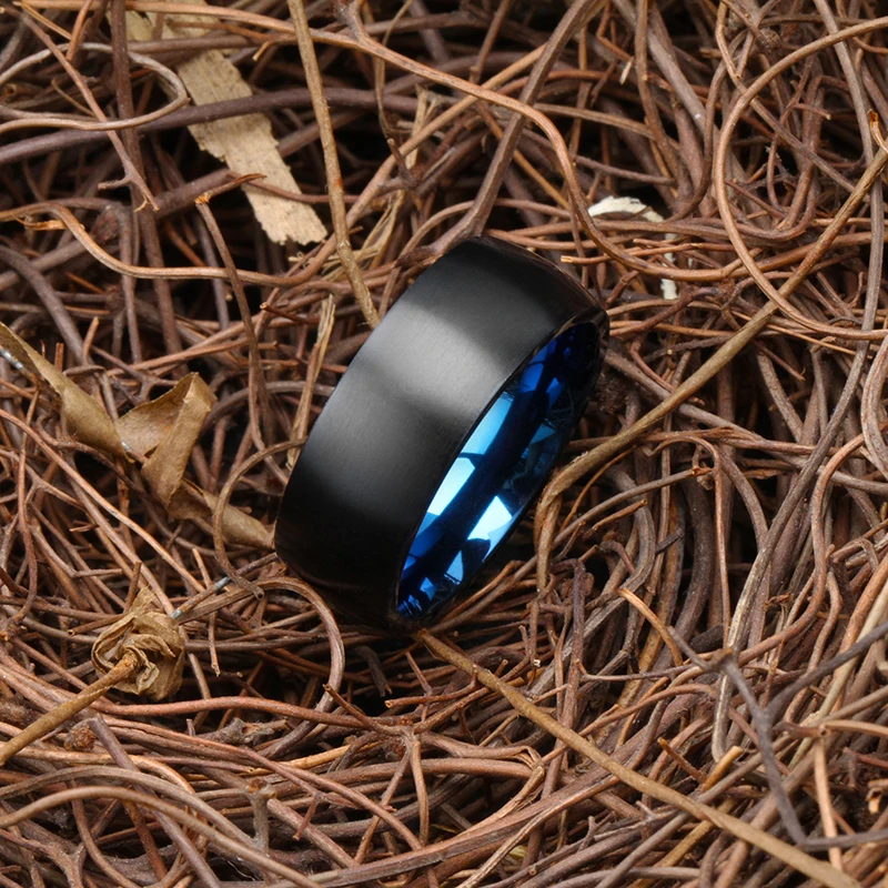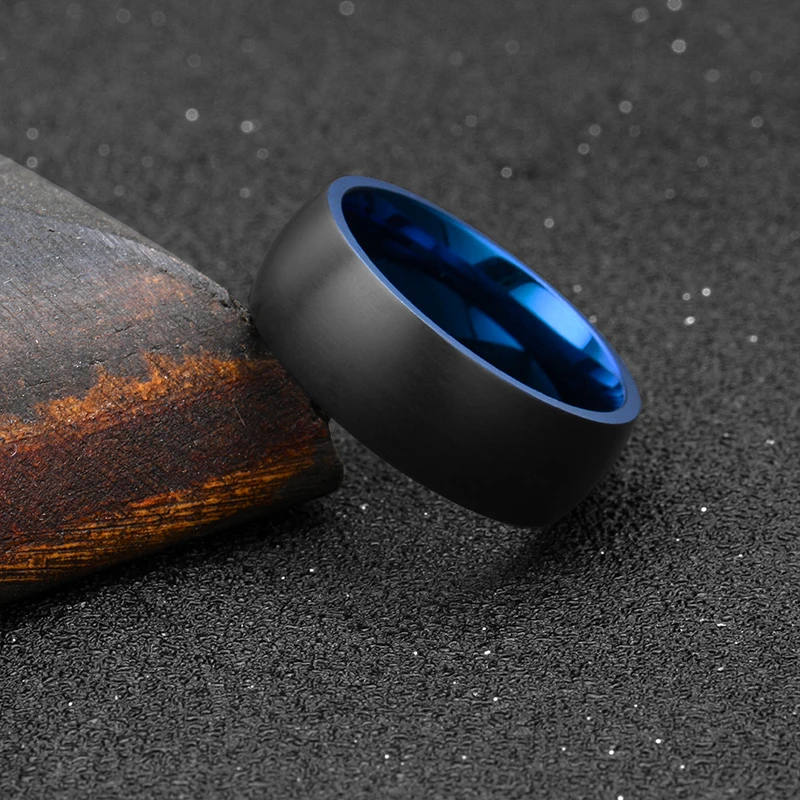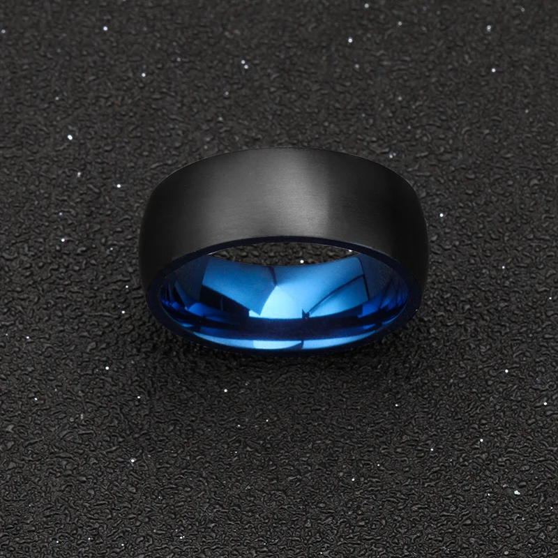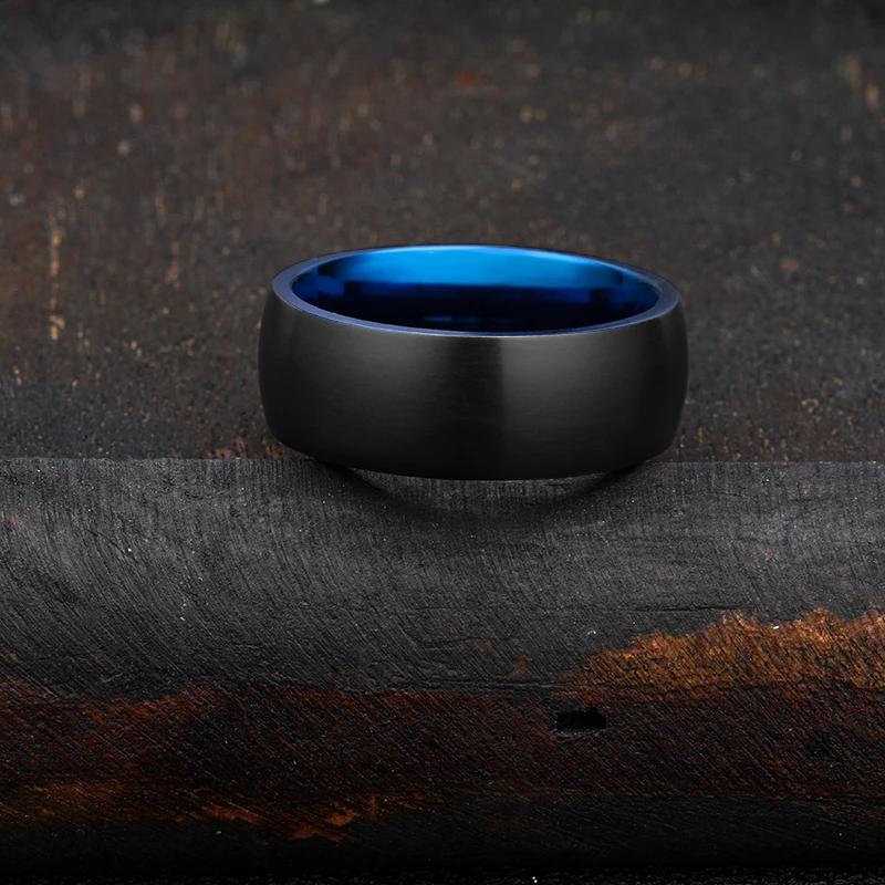 8mm Domed Two Tone Blue and Black Steel Matt Titanium Wedding Band for Men