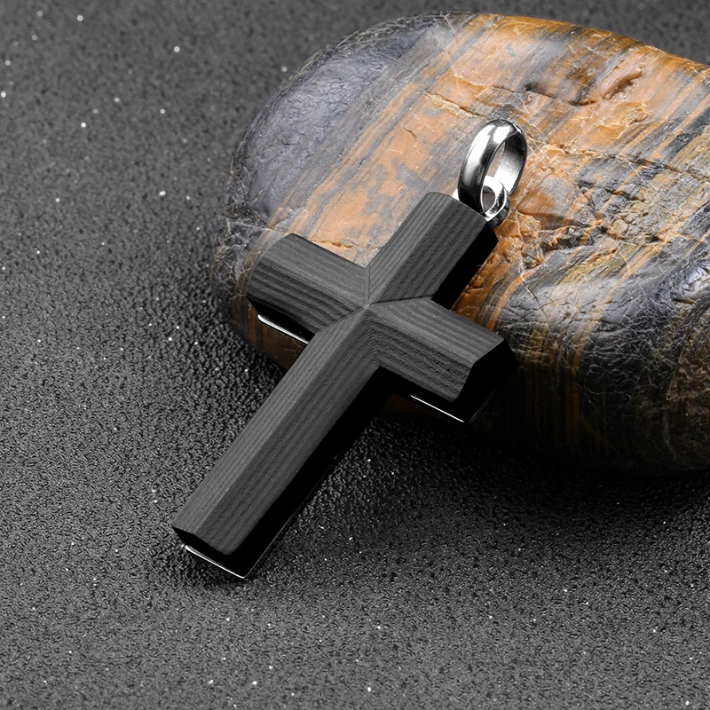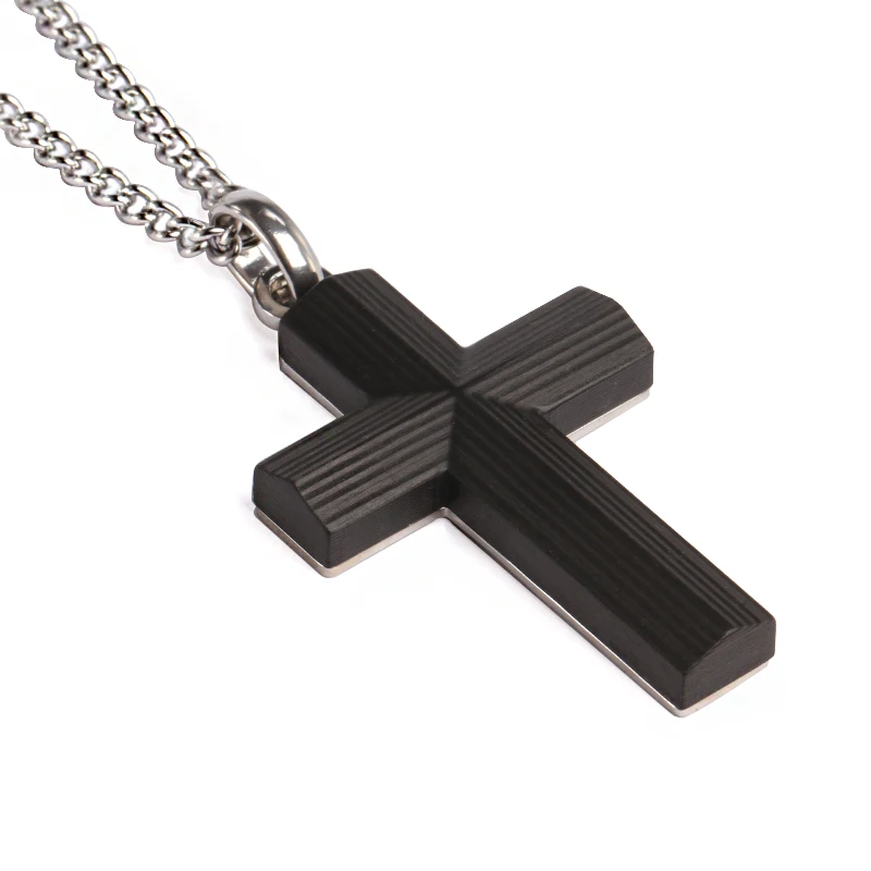 Factory Wholesale Men's Fashion Jewelry Pendants & Charms Carbon Fiber Stainless Steel Cross Pendant Necklace