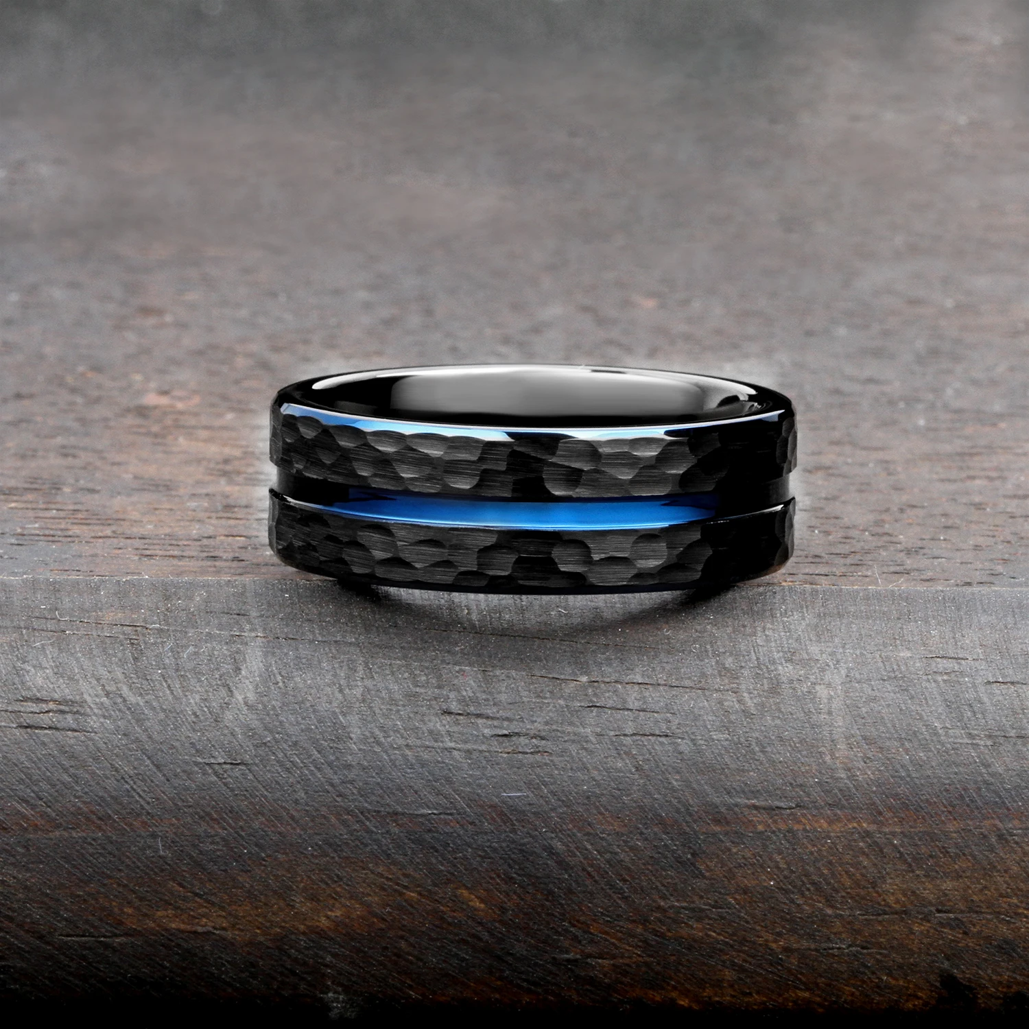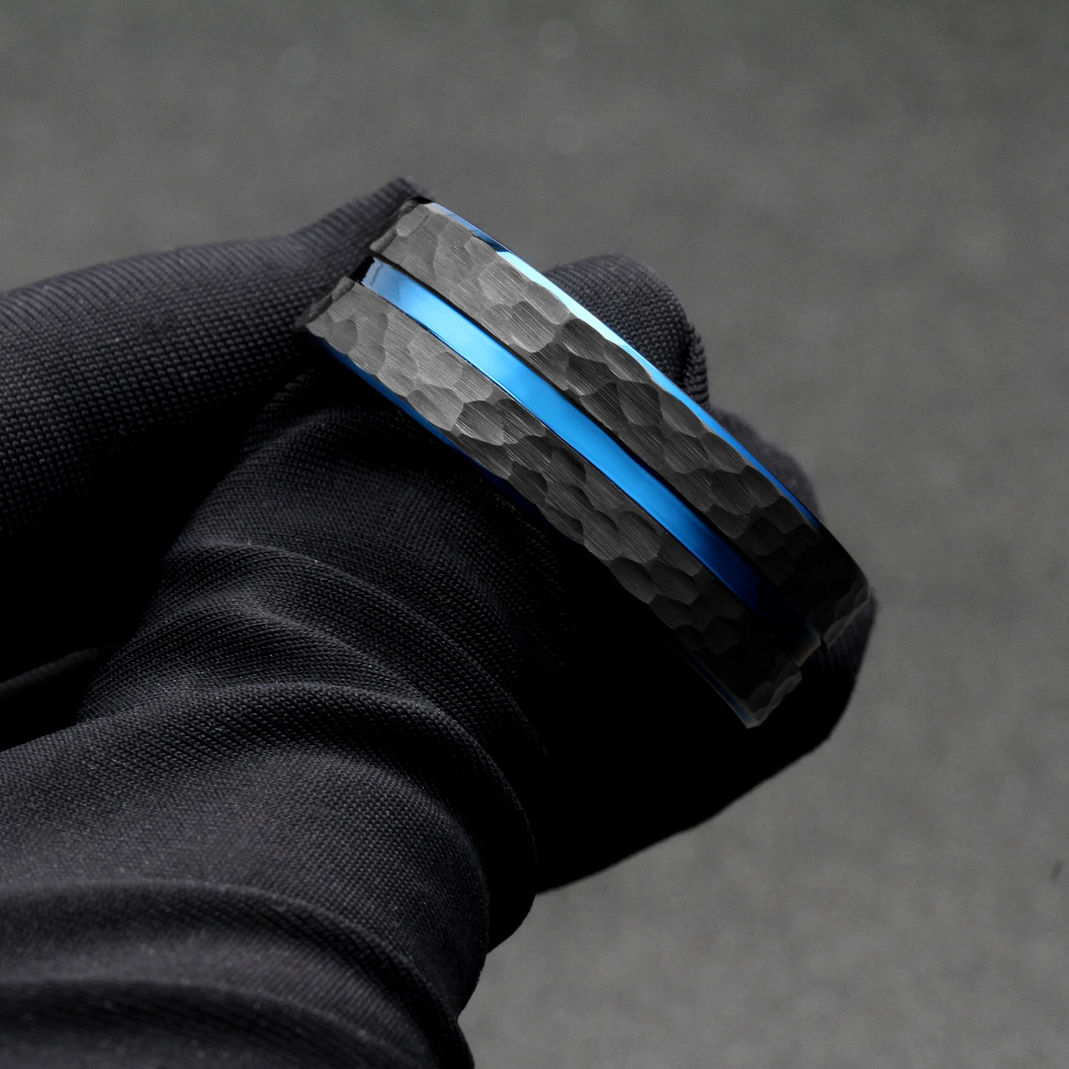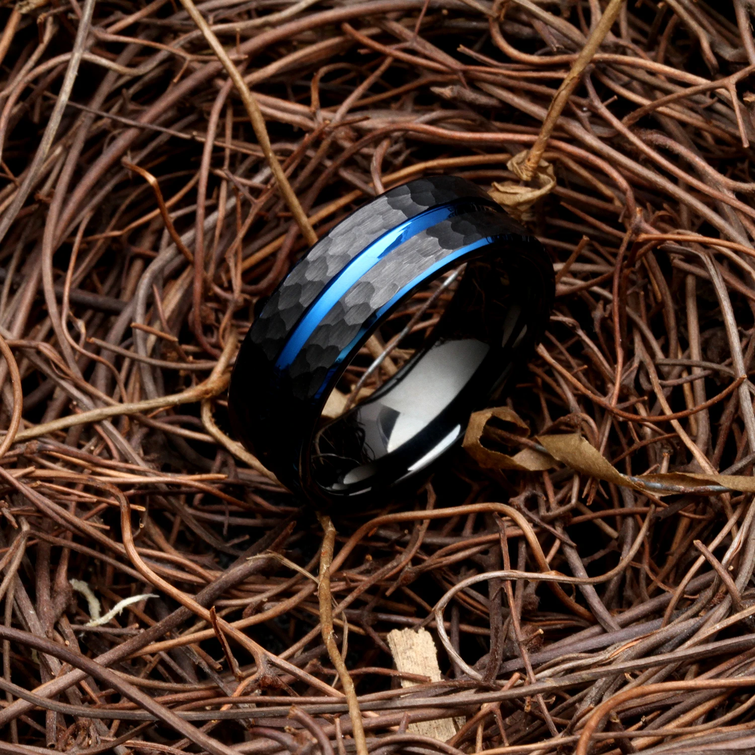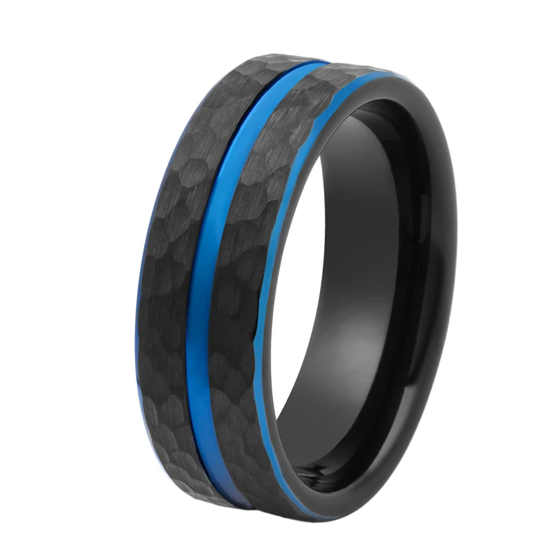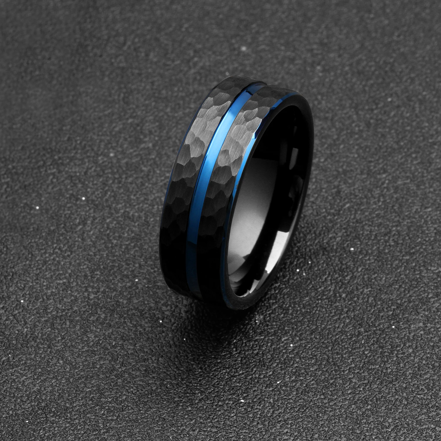 Tizti Jewelry Fashion Jewelry Wedding Rings Hammered Style Blue Shiny Groove Edge Tungsten Carbide Ring