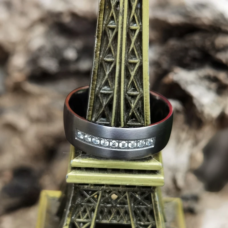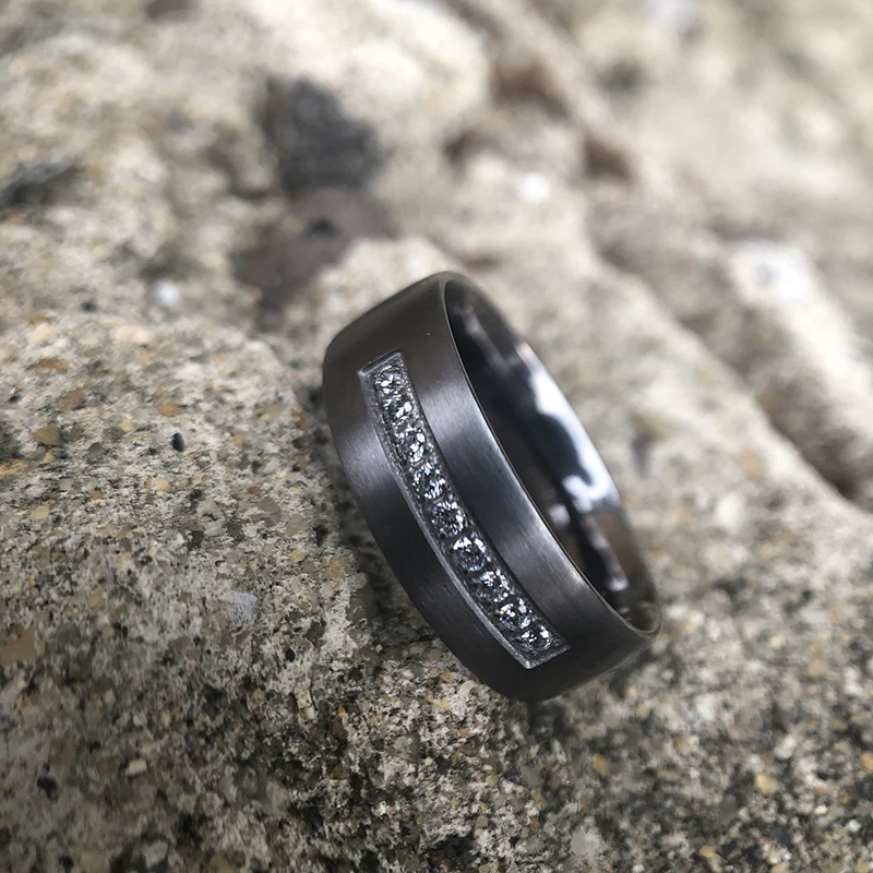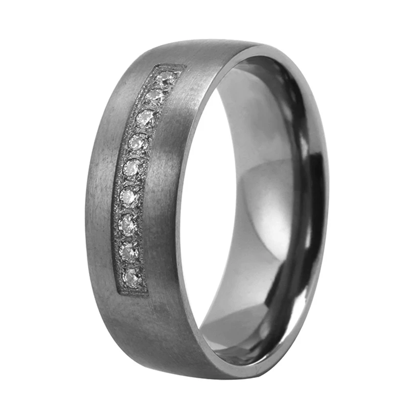 Fashion Jewelry Matt Finish 7mm Men Dome Shape White CZ Stones Inlay Comfort Fit Pure Tantalum Wedding Band Ring