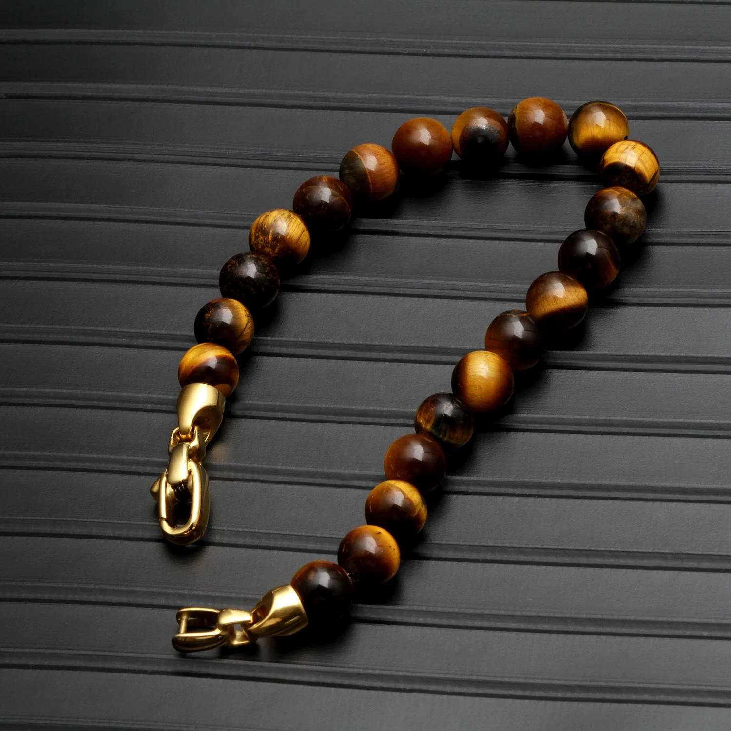 Custom 8mm Brown Natural Tiger's Eye Stone Beaded Stainless Steel Clasp Unisex Vintage Fashionable Anniversary Bracelet