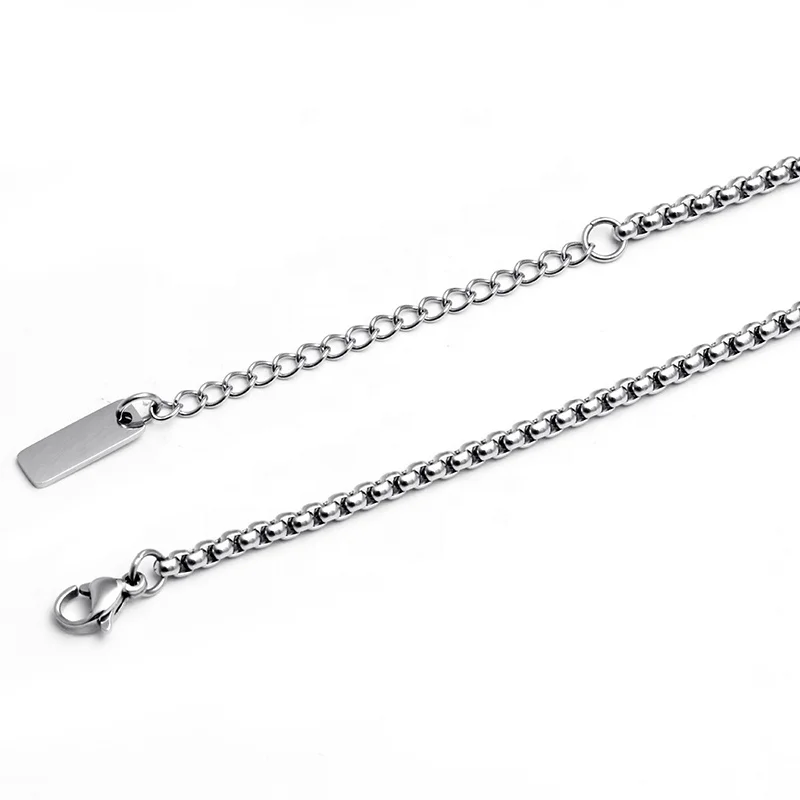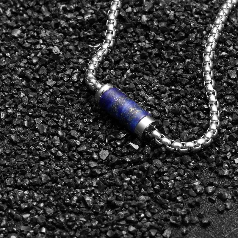 3mm Stainless Steel Necklace Box Chain with Cylindrical Lapis Lazuli Stone Bead Fashionable Men Necklace