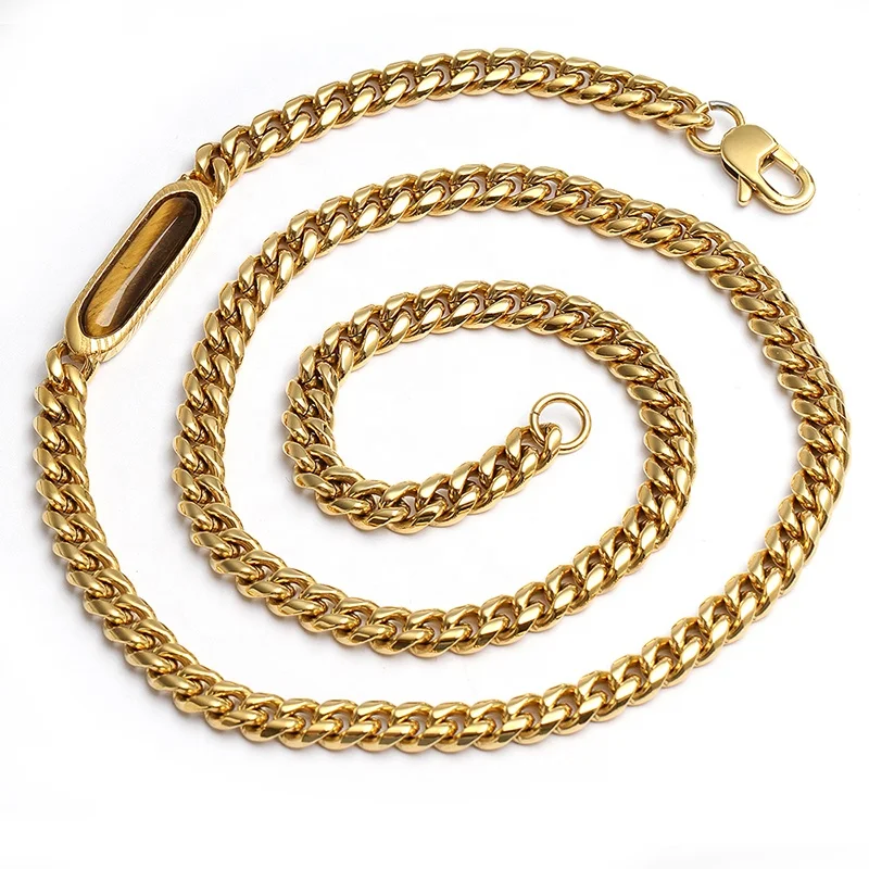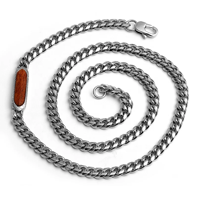 Wholesale Classic Stainless Steel Cowboy Necklace with Damascus Steel and Lapis Stone Necklace Chain for Men