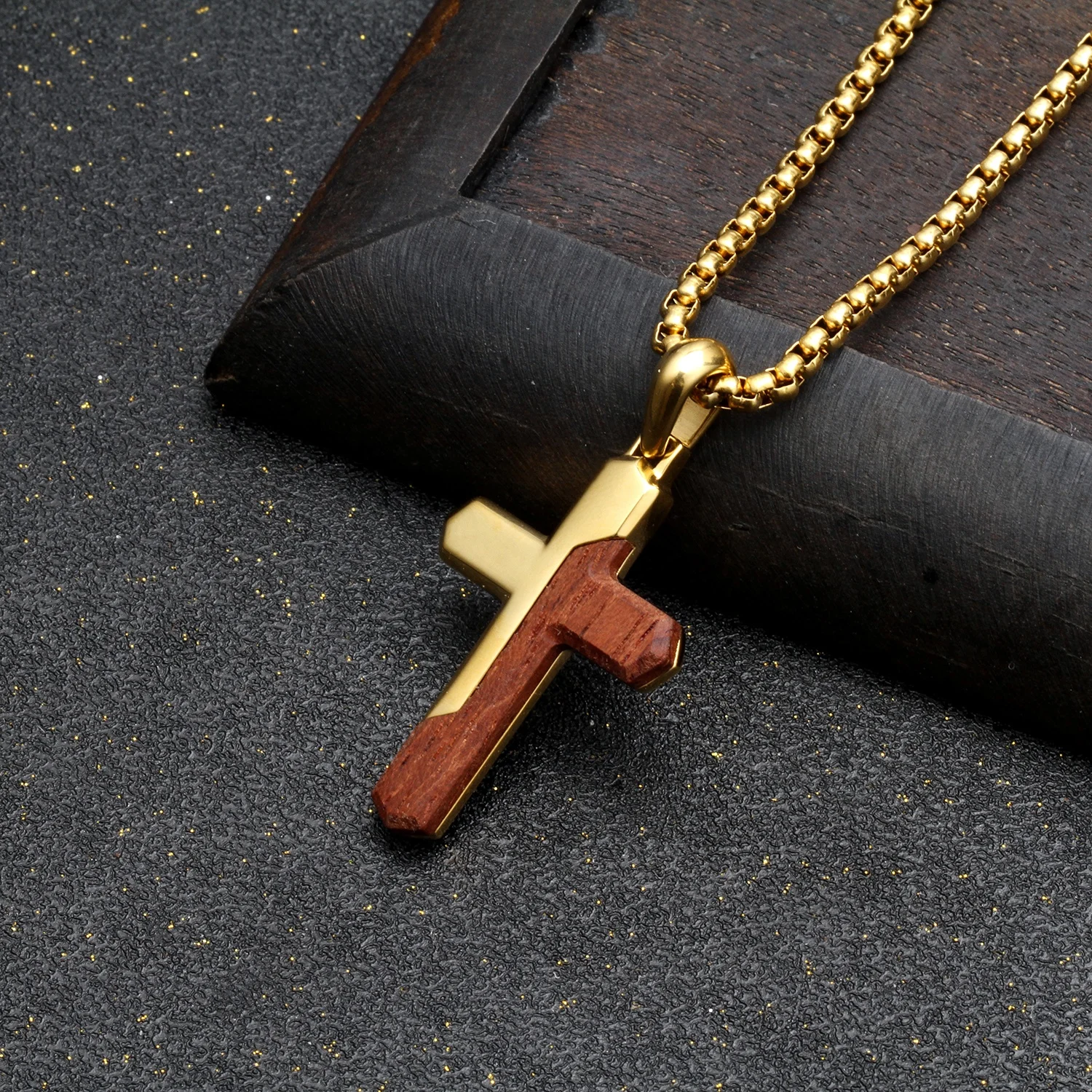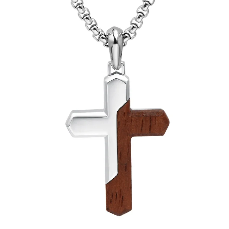 TIZTI Top Selling Small Pendant Gold Plating Stainless Steel with Bubinga Wood Small Cross Charming Necklace Pendant for Men