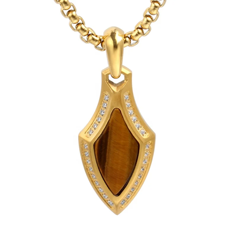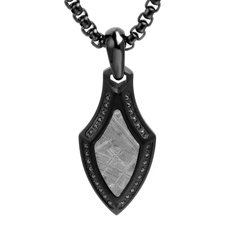 Trendy Stainless Steel Small Shield With Real Meteorite Pendant, Inlay With 30pcs 1.0mm White Zircons Steel Meteorite Pendant