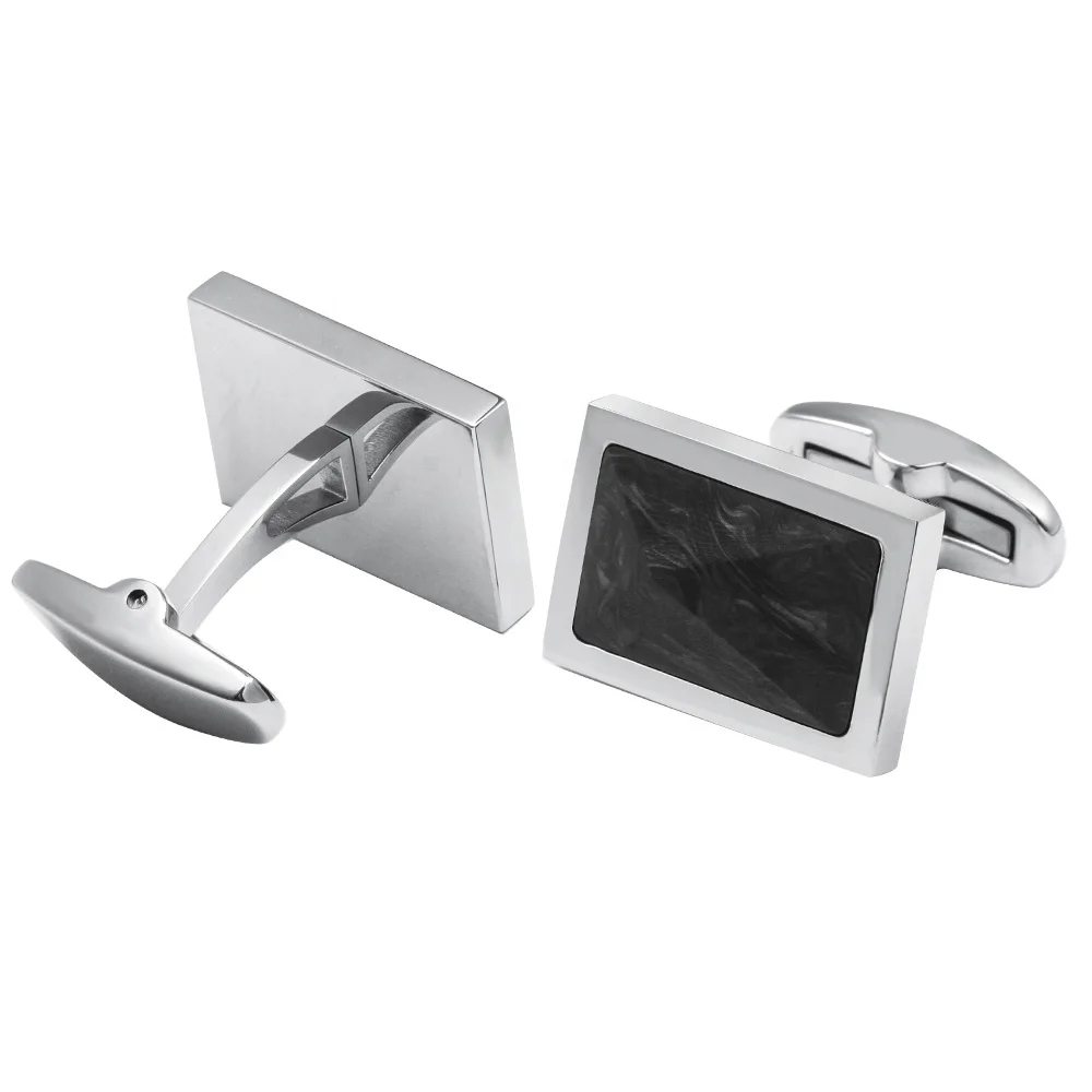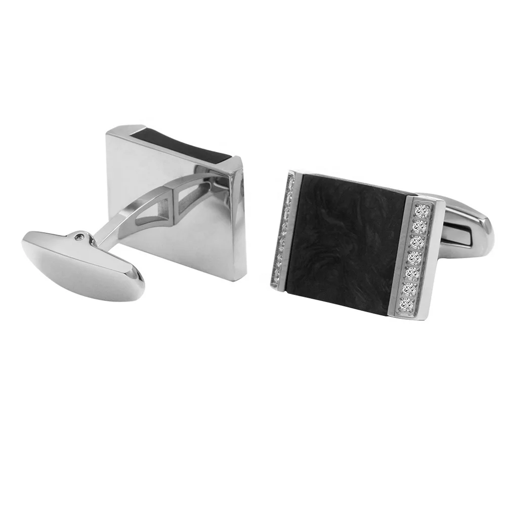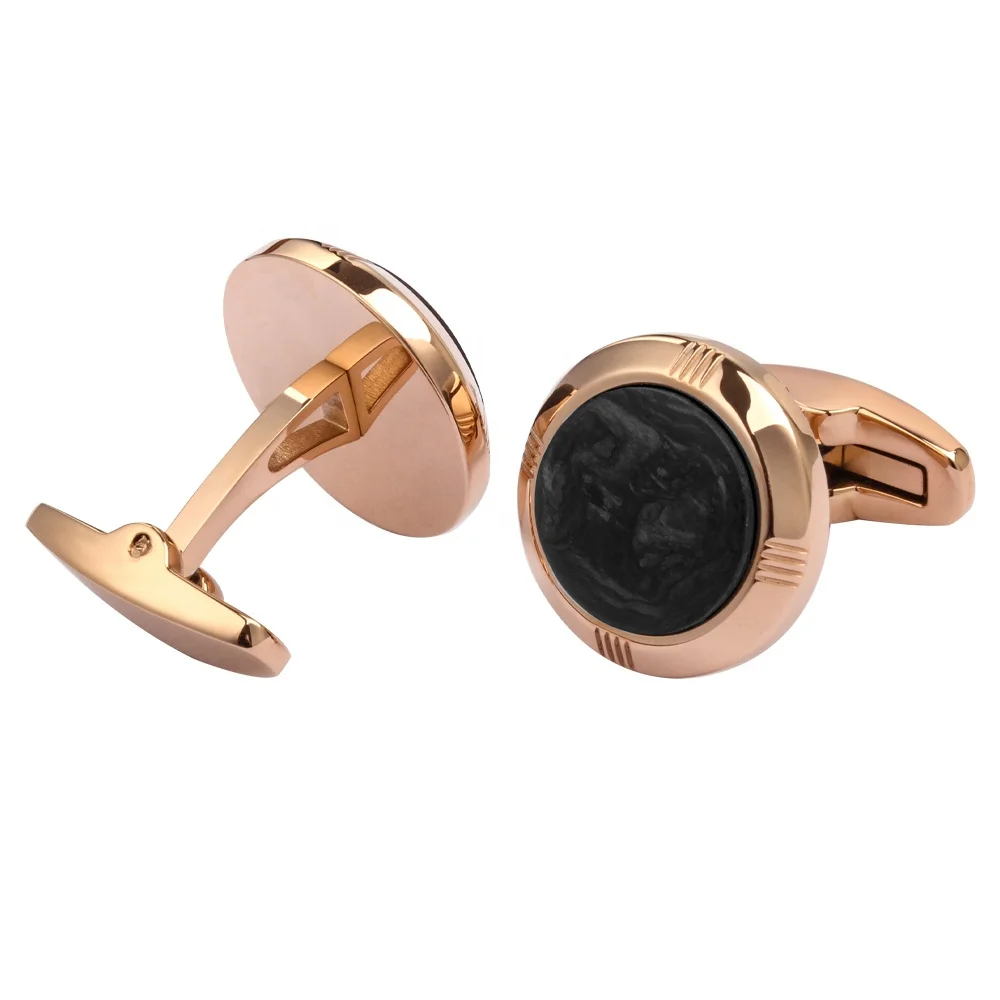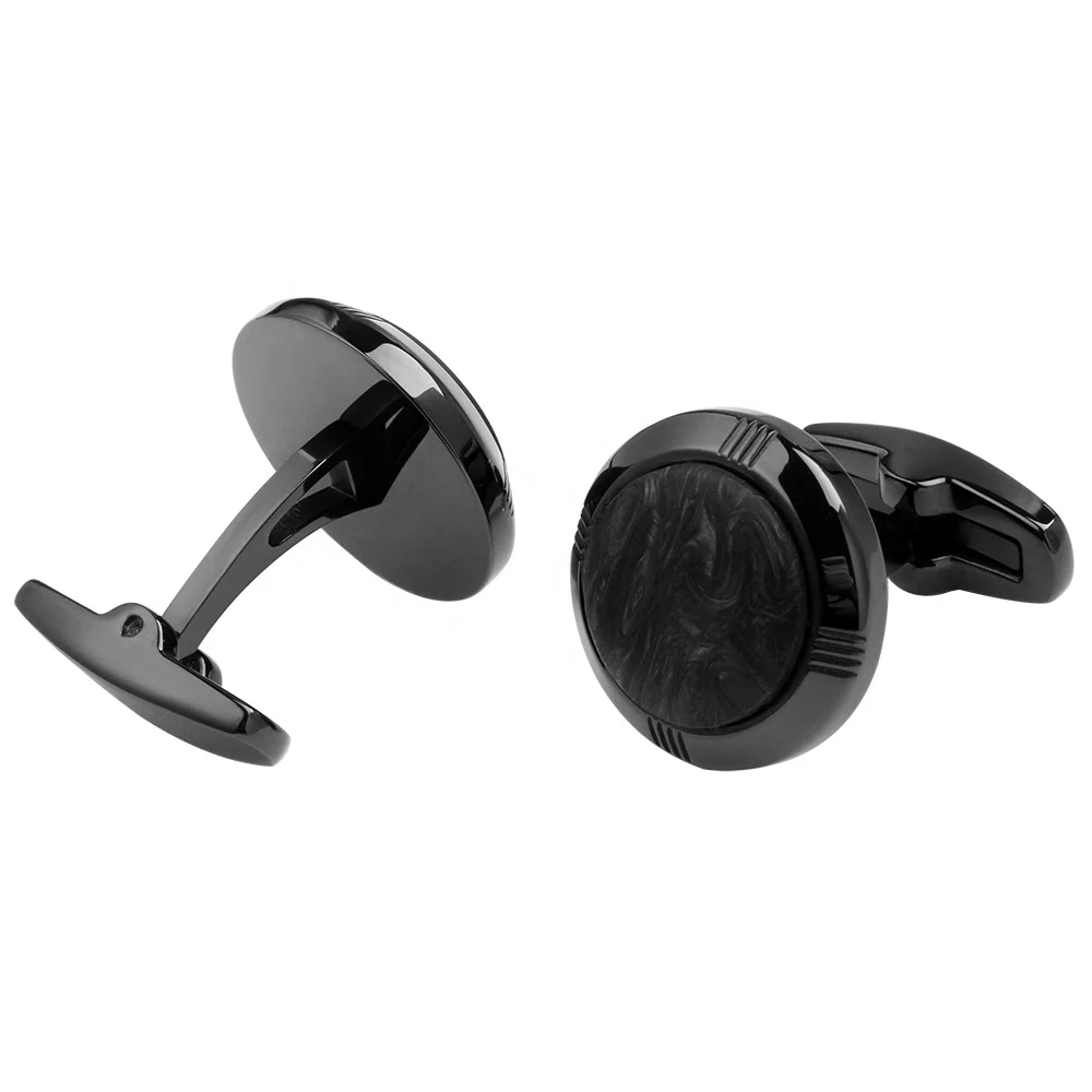 Fashionable Stainless Steel Cufflinks with Forged Black Carbon Fiber Inlay Round Men Shirt Cufflinks