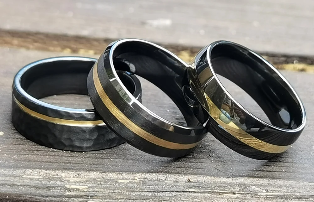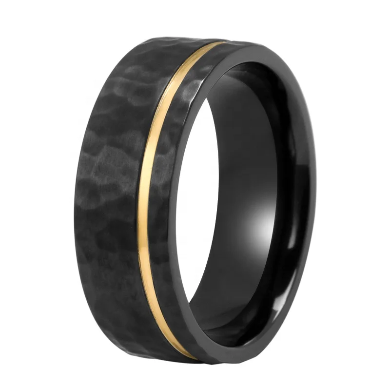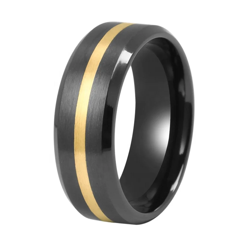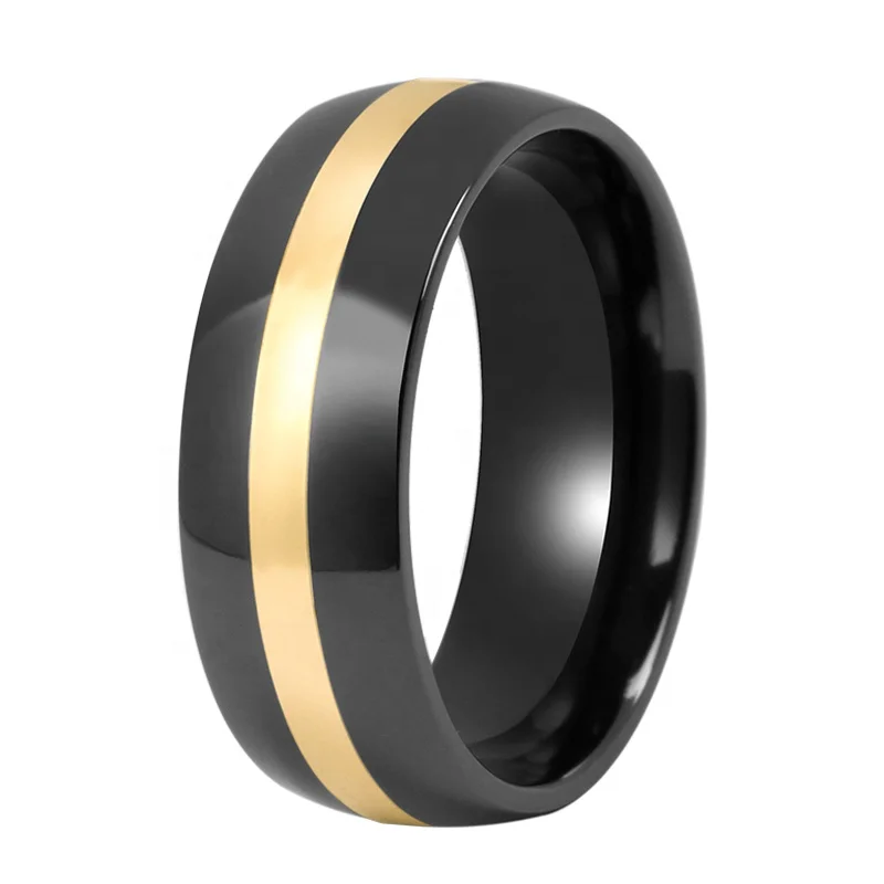 Factory Directly Sale 8mm Dome Black Zirconium Ring with Real 18K Gold Inlay Luxury Wedding Band Jewelry Ring for Men