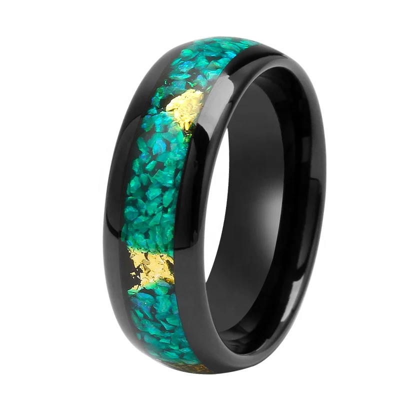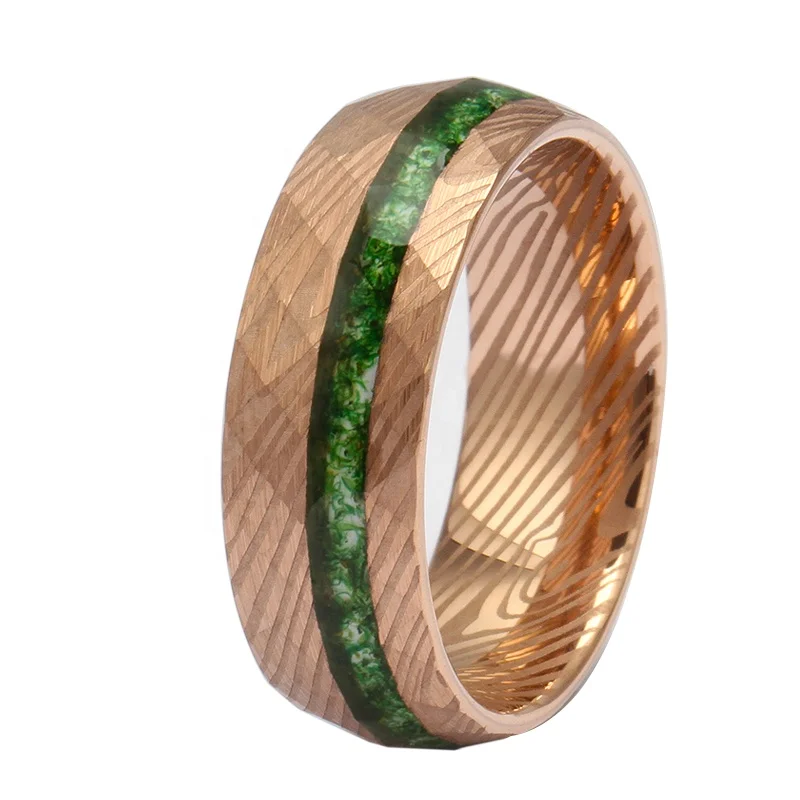 8mm Green Moss Agate Wedding Band Rose Gold Laser Faceted Pattern Tungsten Ring Men Comfort Fit Tungsten Moss Agate Ring for Men