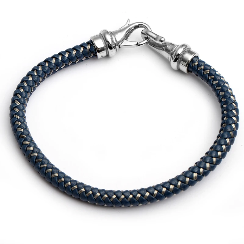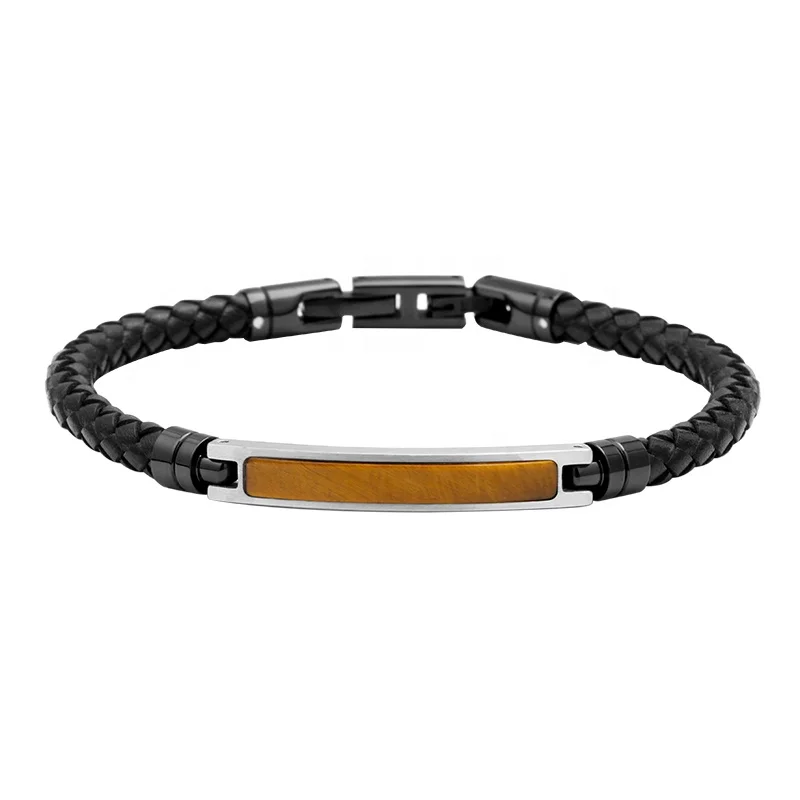 Men's Braided Real Leather Bracelet Black with Stainless Steel and Black Onyx Men Bracelet