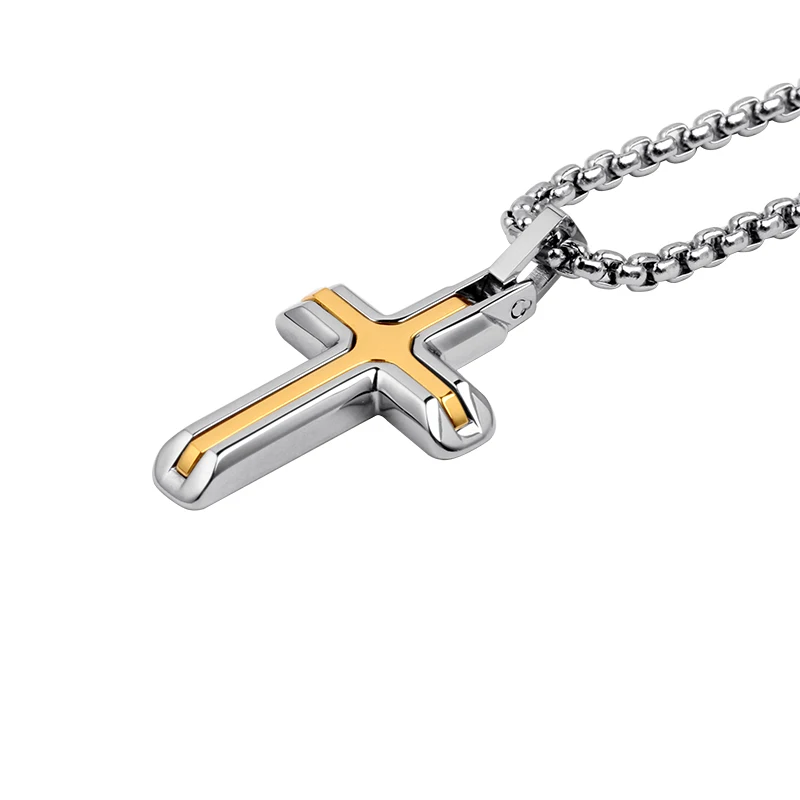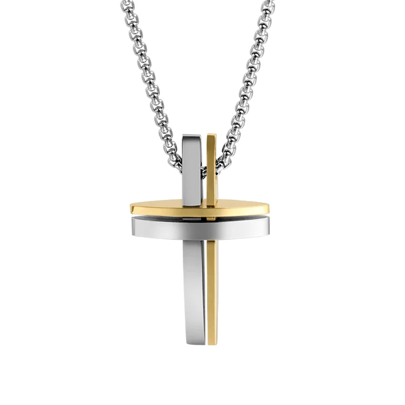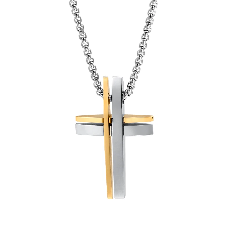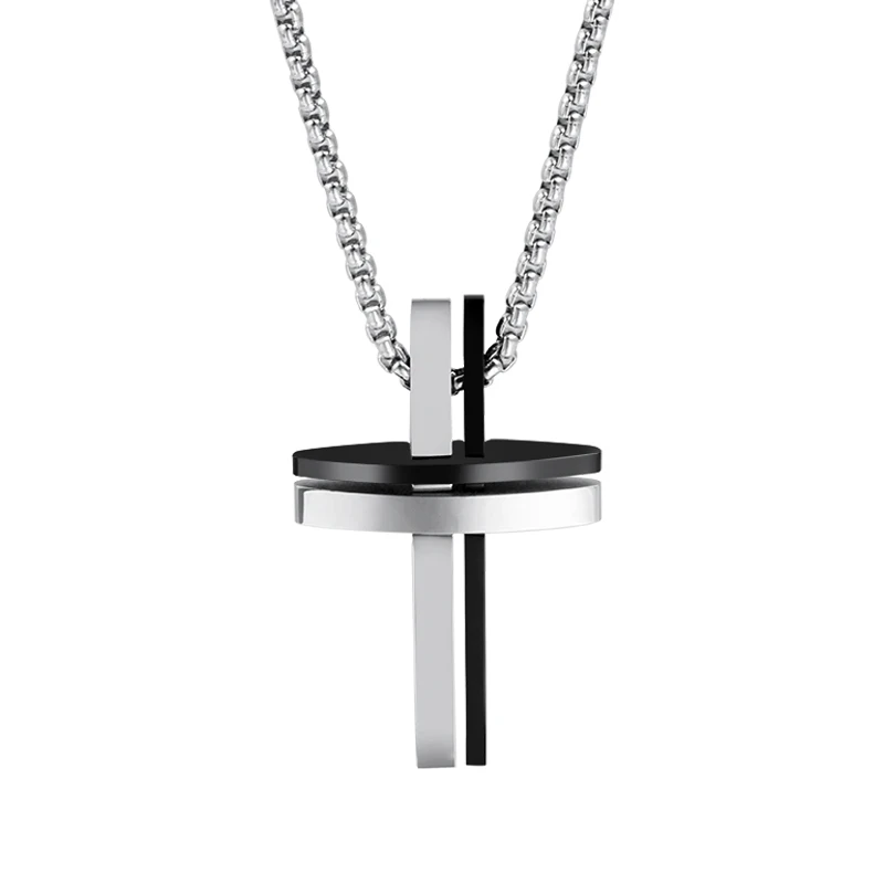 Fashion Design Double Cross Unique Jewelry Stainless Steel Tizti Pendant Necklace for Men Bijoux En Acier Inoxydable