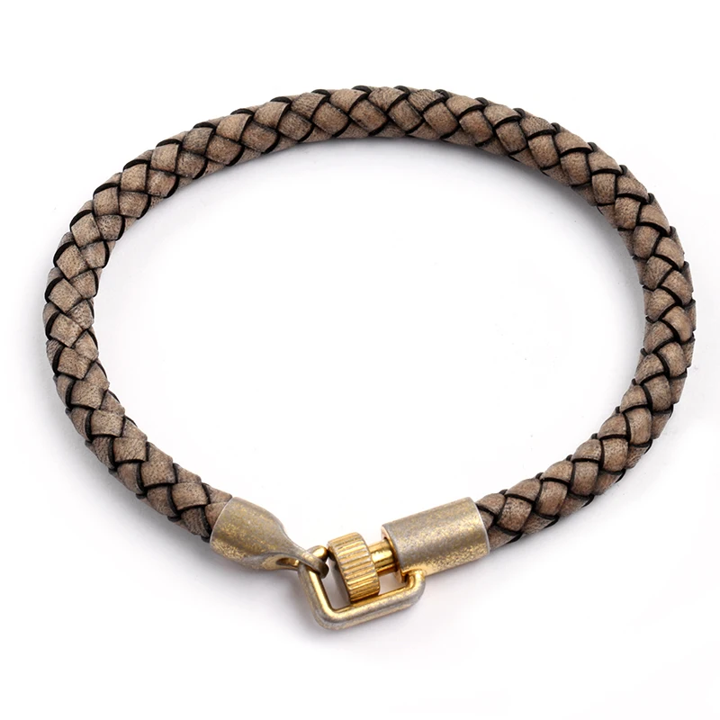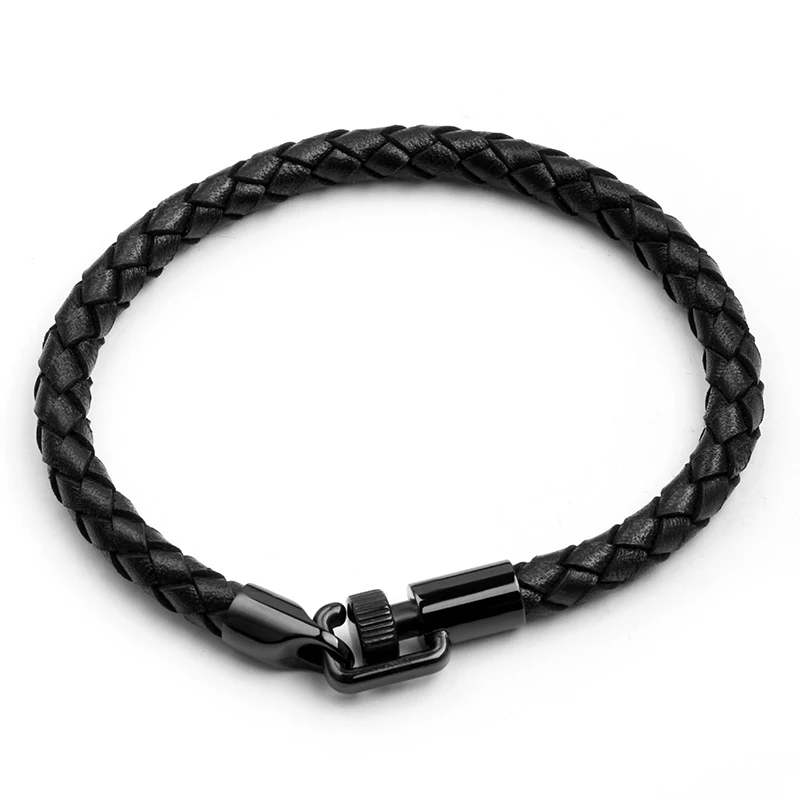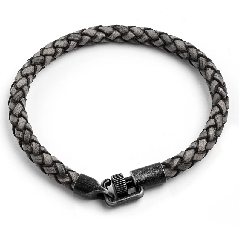 Antique Black Braided Leather Bracelet With Black Antique Steel Clasp Fashion Real Leather Wristbands for Men