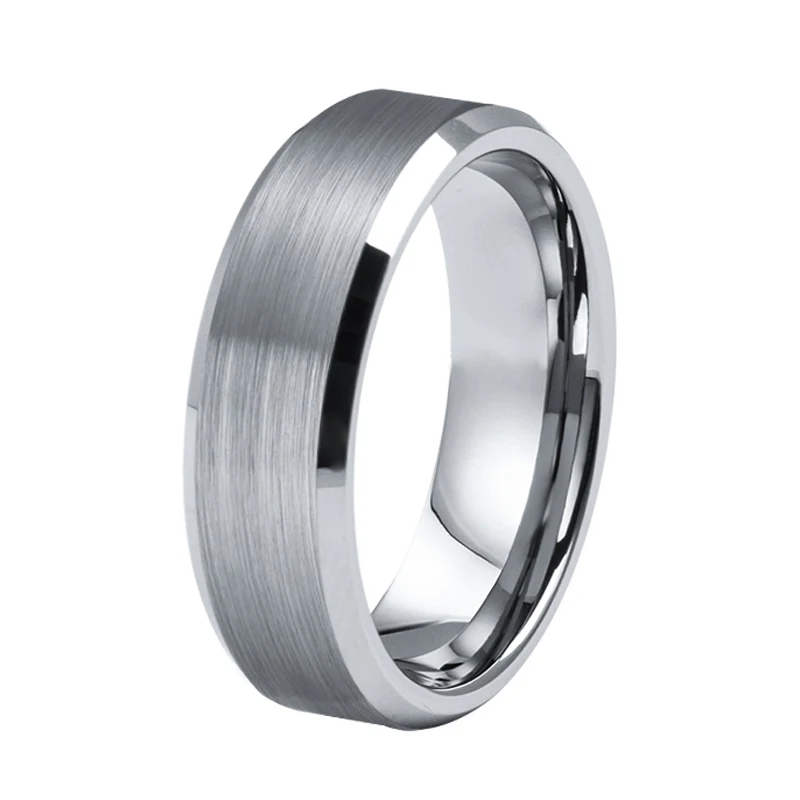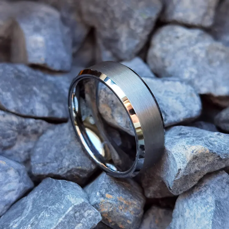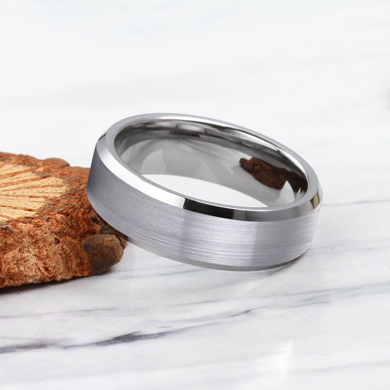 Gray Brushed Plain Tungsten Ring Gunmetal 8mm High Polish Beveled Edge Engagement TIZTI Ring Tungsten Titanium Wedding Band