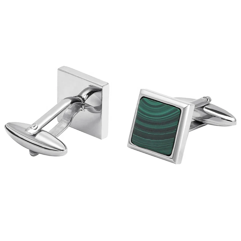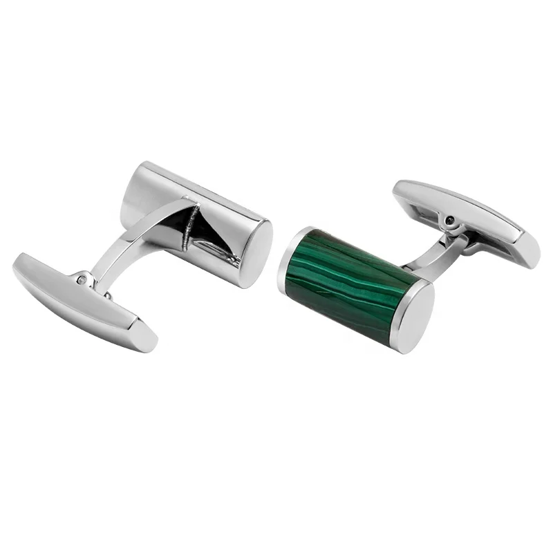 Factory Directly Sale Wholesale Price Stainless Steel and Malachite Stone Round Shirt Cufflinks