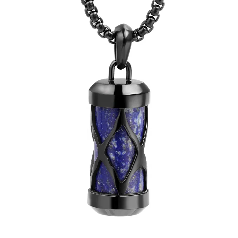 TIZTI Pendant Stainless Steel with Tiger Eye Gemstone Inlay Hollow Cylindrical Mens Necklace Pendant