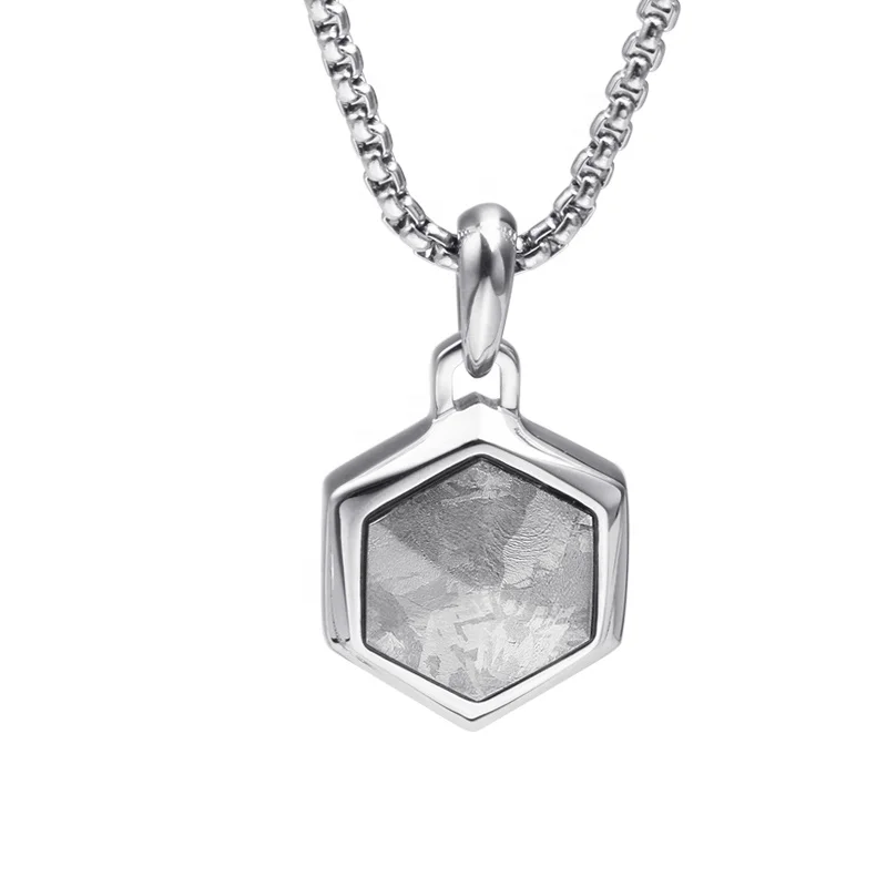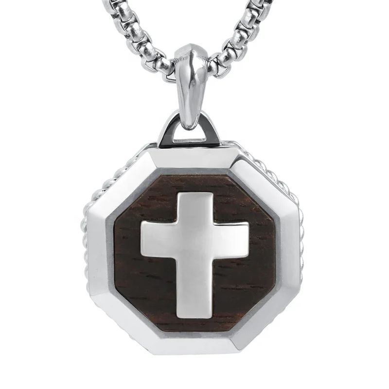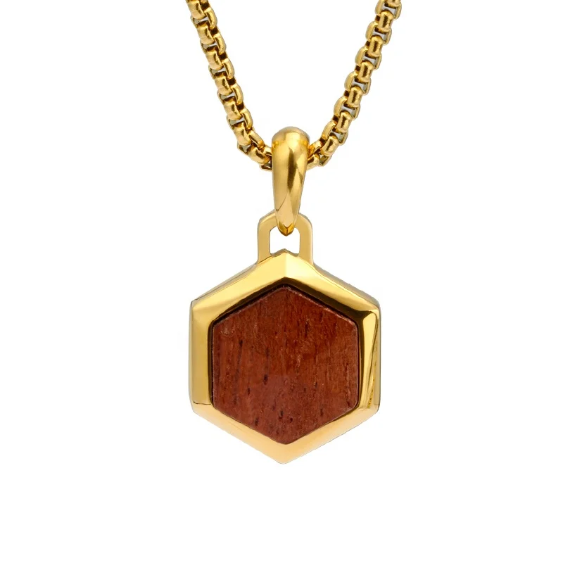 Trendy Charming 316 Stainless Steel with Ebony Wood Inlay Hexagon Men Necklace Pendant