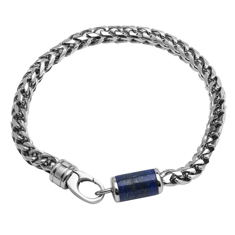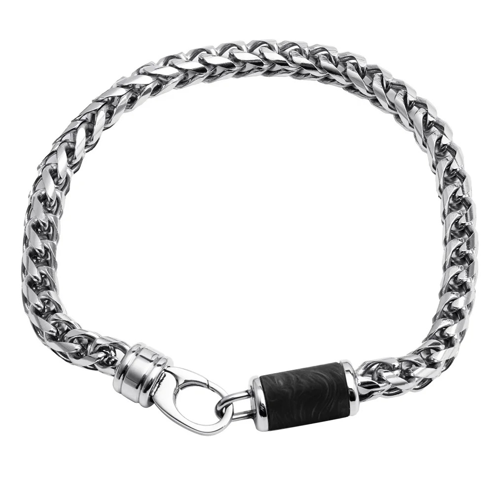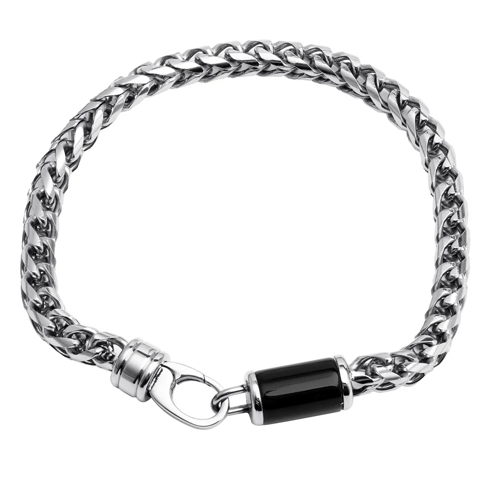 5mm Stainless Steel Wheat Chain Bracelet with Whiskey Barrel Wood Bead Men Bracelet Link Chain