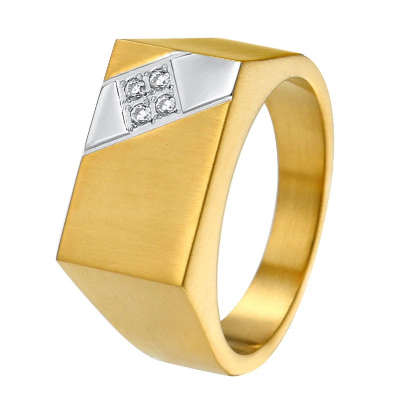Men's Stainless Steel Titanium with Black Cubic Zirconia Stone Ring Signet Engagement Wedding Band Men Ring