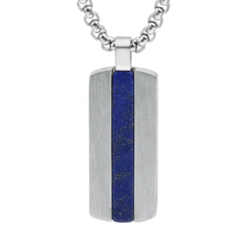 Stainless Steel with Rectangle Nature Lapis Lazuli Stone Charming Necklace Pendant for Men