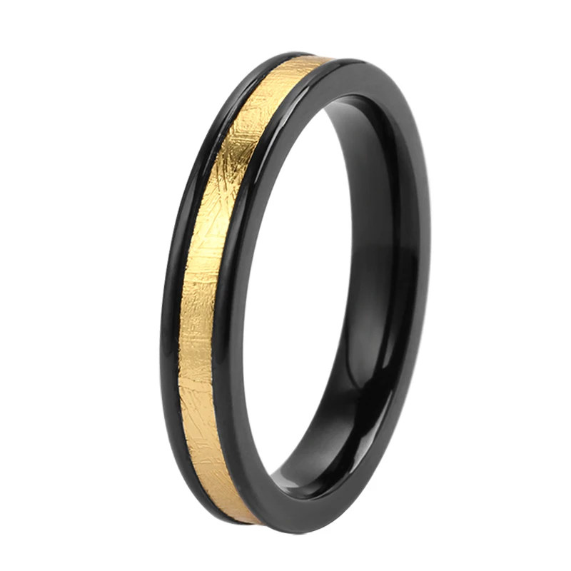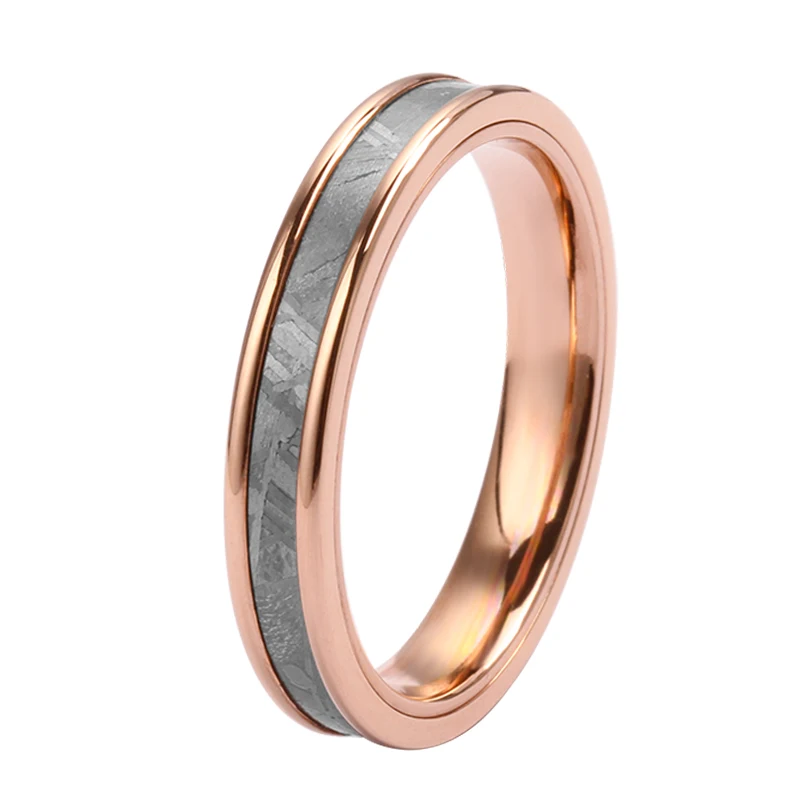 Authentic Meteorite Jewelry 4mm Stainless Steel With 2mm Meteorite Inlay Engagement Wedding Band Women and Men TIZTI Rings