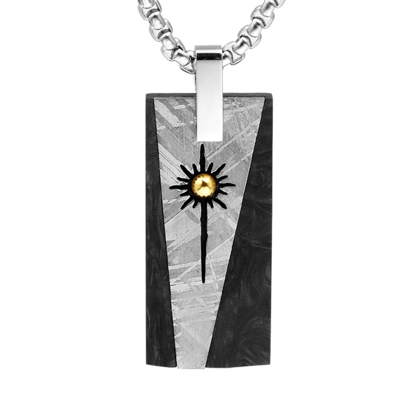 Men's Luxury Jewelry Muonionalusta Meteorite and Forged Carbon Fiber Charming Necklace Sun Pendant