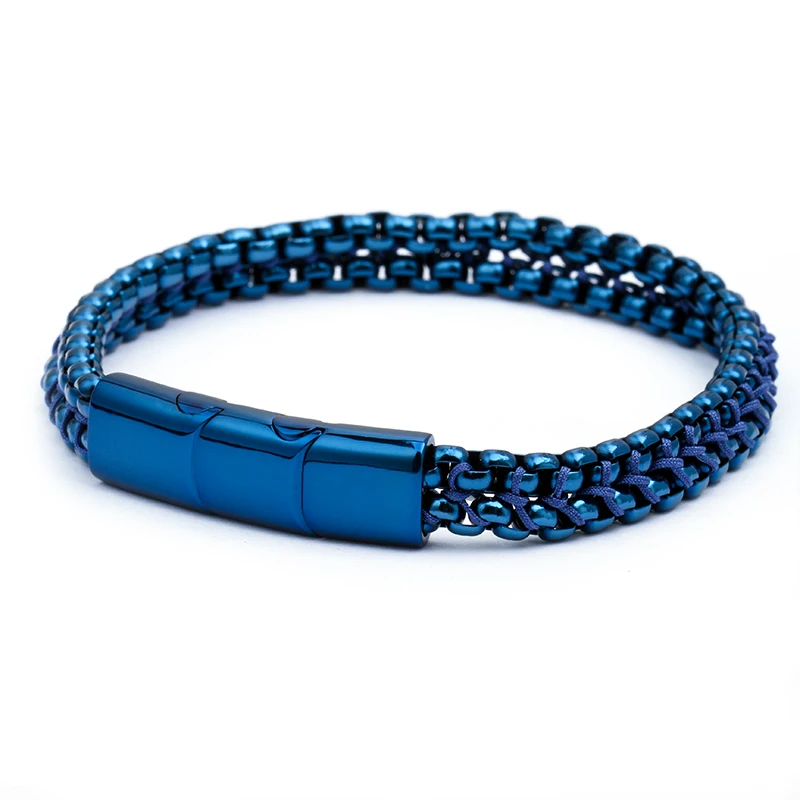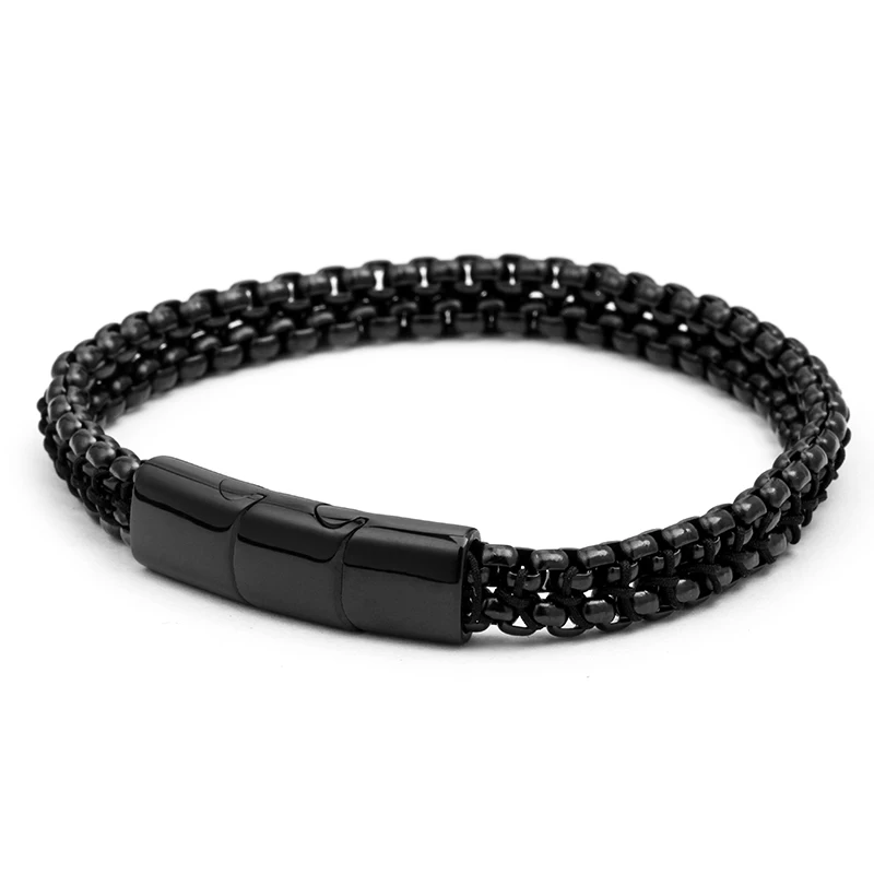 8mm Gold Plated Stainless Steel Double Box Chain Bracelet Unisex Adjustable Black Cord Inlay with High Polished Clasp & Extender