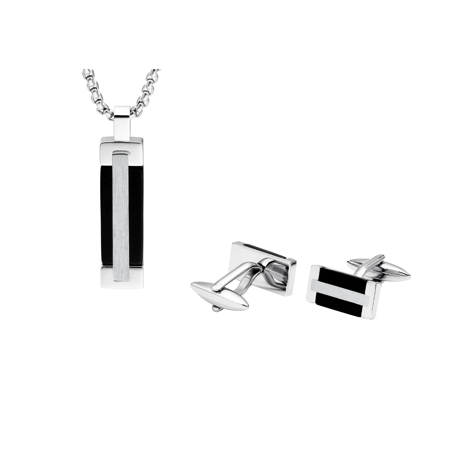 Stainless Steel Black Onyx Gemstone Pendant Necklace Cufflinks Men's Wholesale Custom Engraved Match Men Jewelry Set Charm
