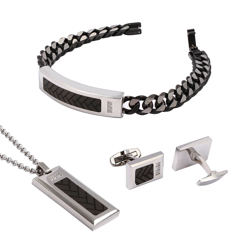 Stainless Steel Carbon Fiber Cuff Link Set for Men-Anniversary Gift Jewelry