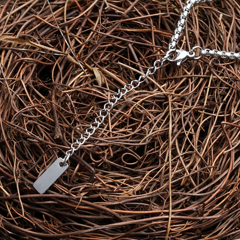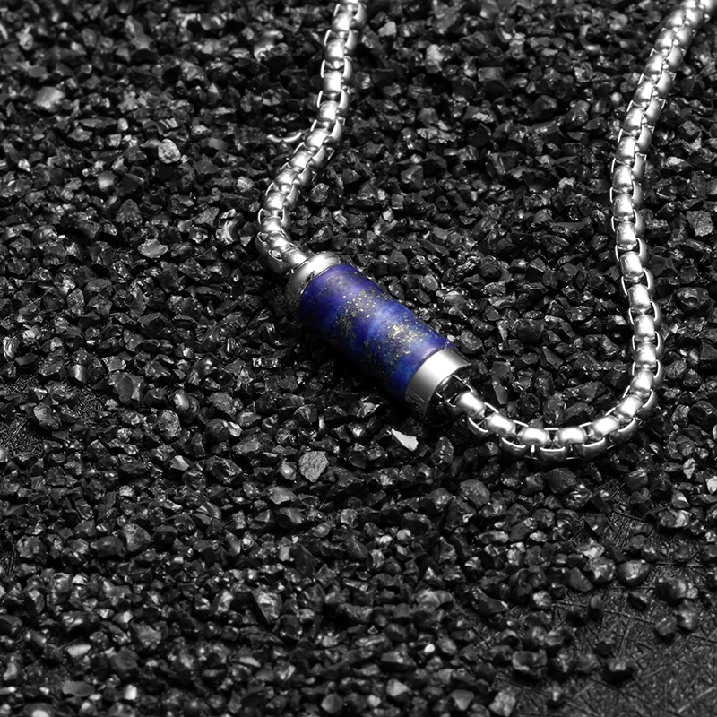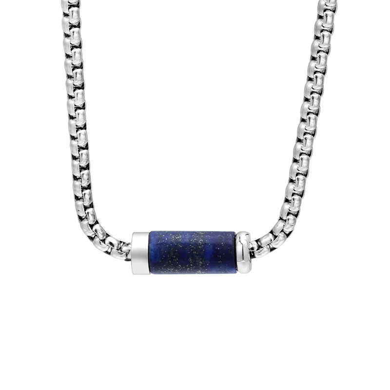 Adjustable Length Women's Stainless Steel Necklace with Lapis Lazuli Inlay 3mm Box Chain Fashion Style for Gift