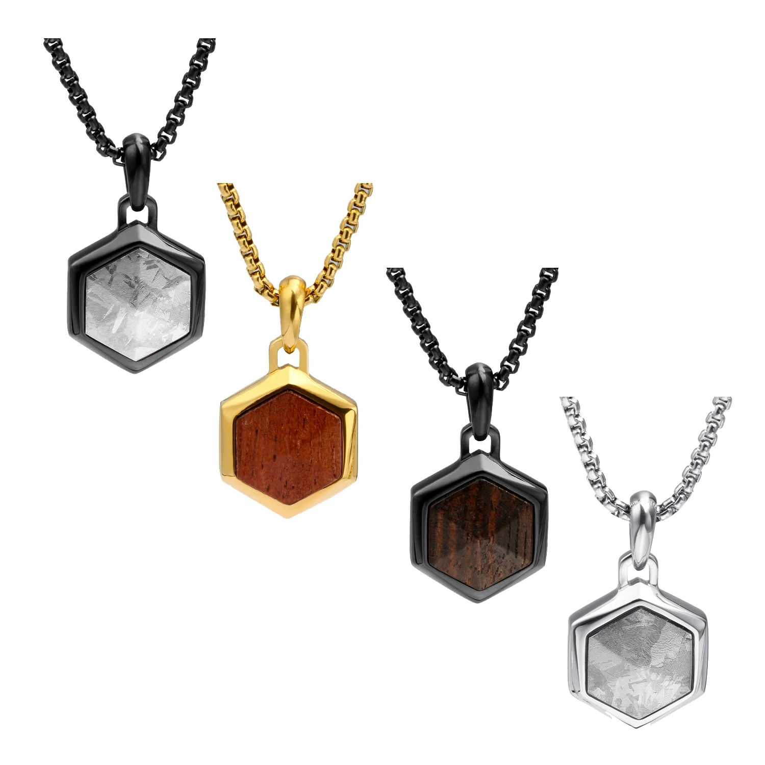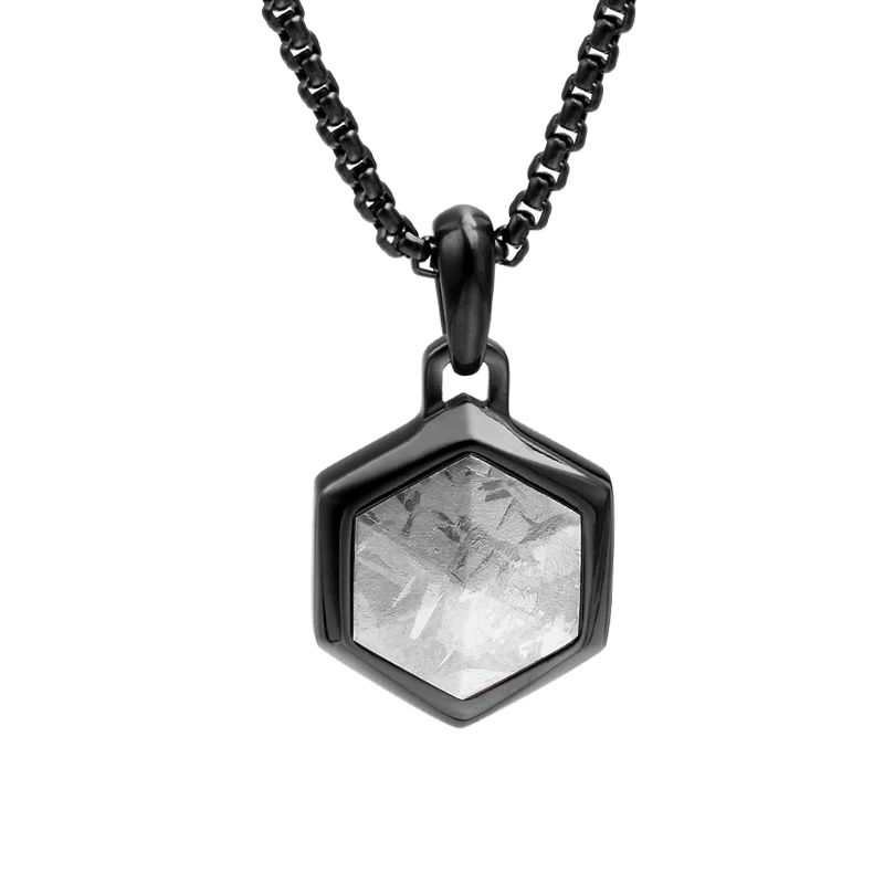 316 Stainless Steel Necklace with Meteorite Wood Crystallization Inlay Hexagon Unique Style Jewelry Pendant Necklace