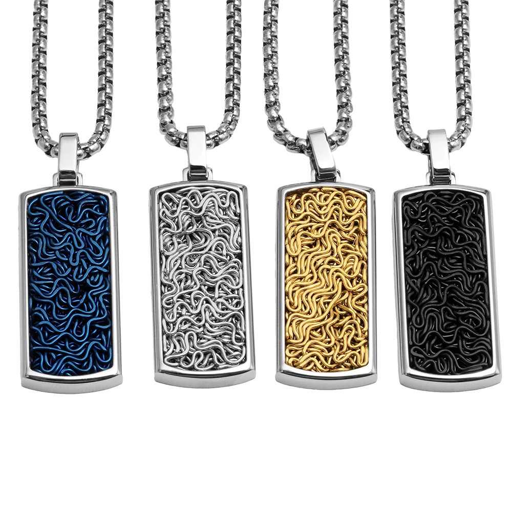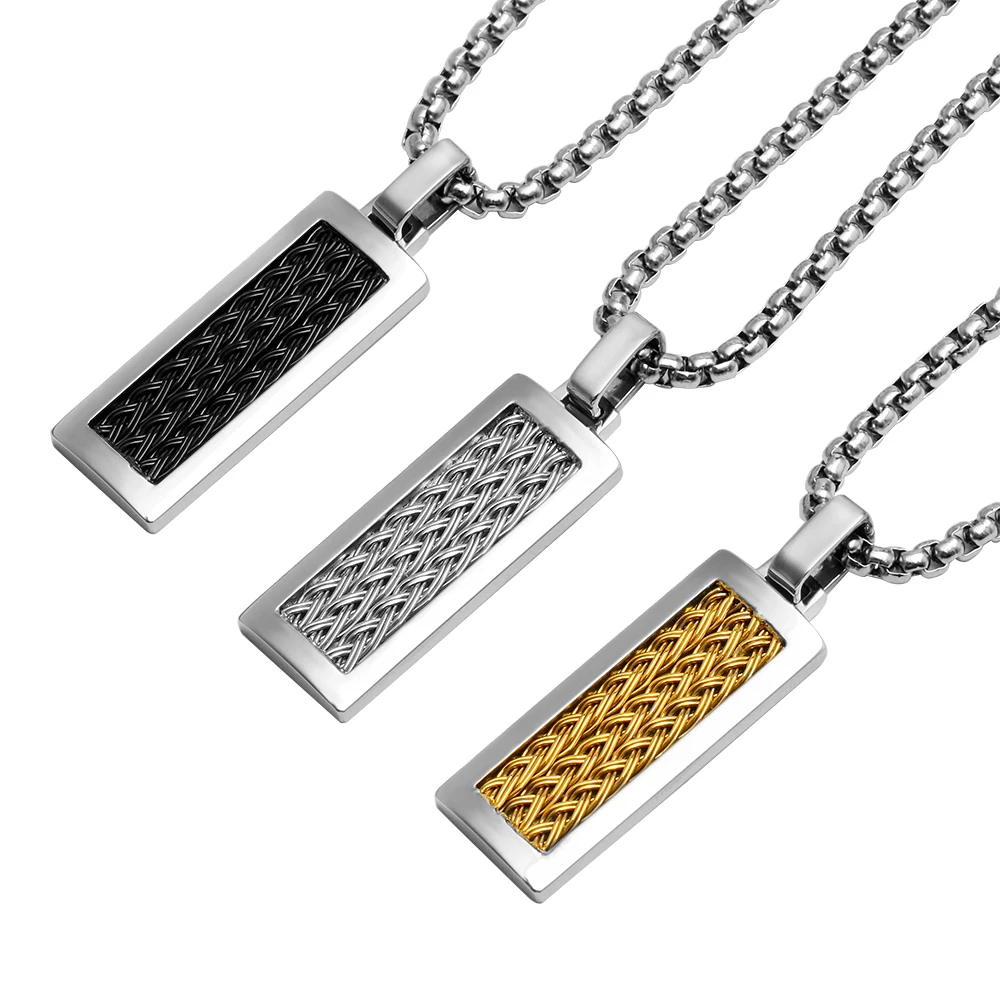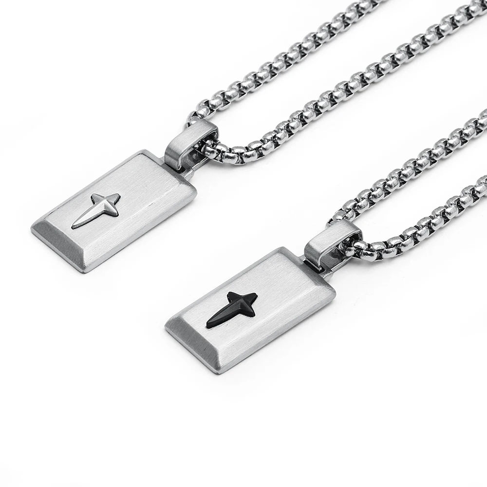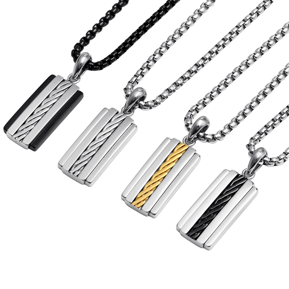 Customizable Logo Rectangle Brushed Stainless Steel Pendant Necklace Matching Chain for Men Fashion Jewelry