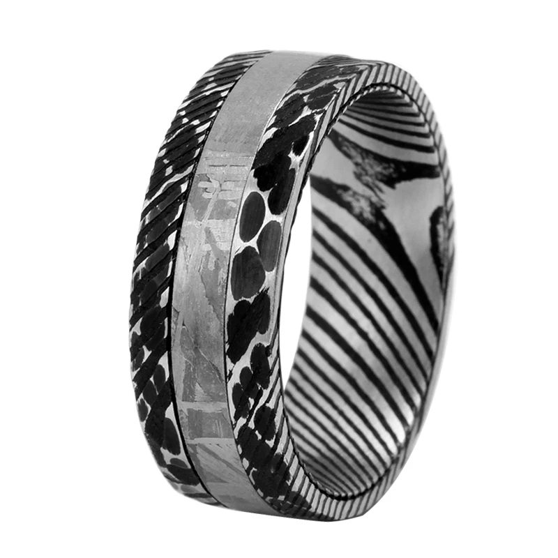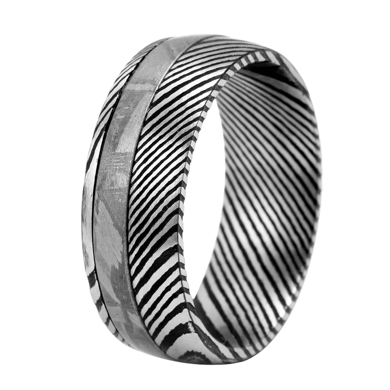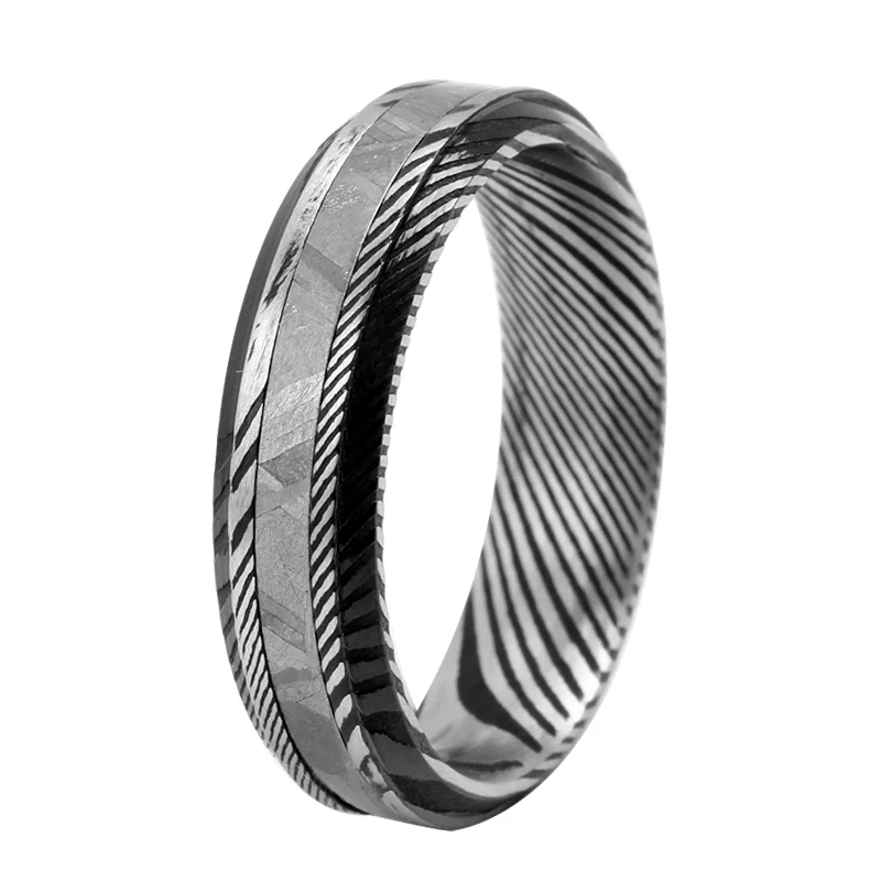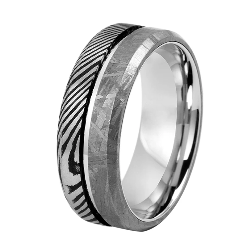High Quality Damascus Steel Real Meteorite Ring Set Trendy Mens Jewelry for Wedding and Engagement Wholesale
