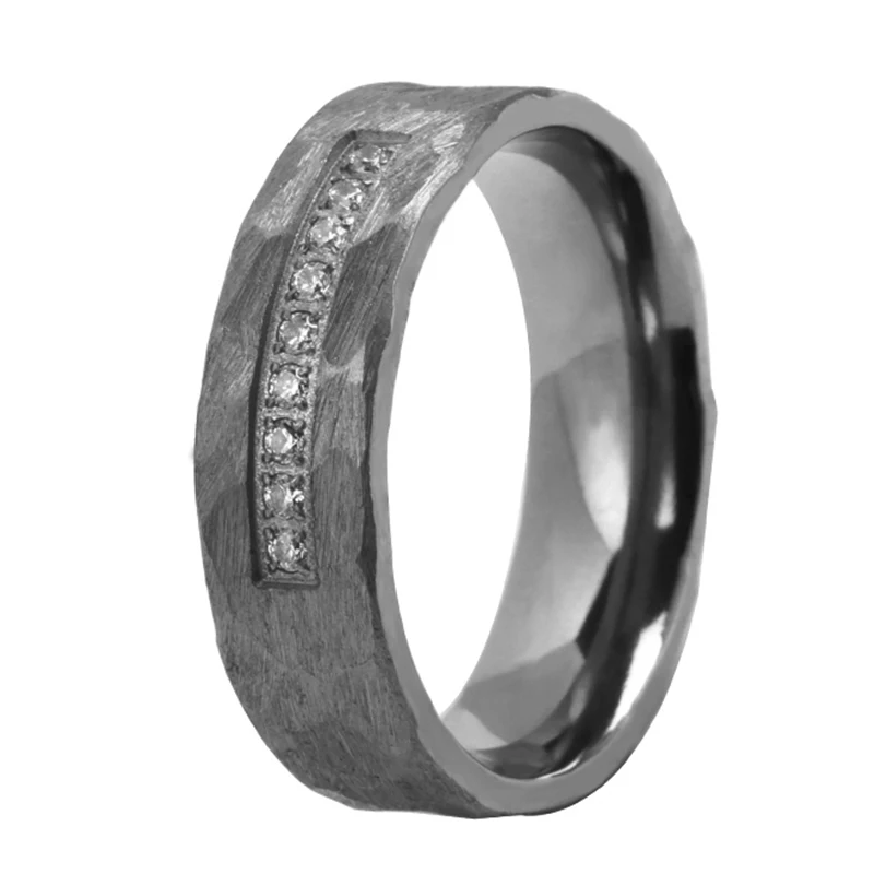 8mm Trendy Brushed Faceted Stainless Steel Black Luxury Zirconium Sleeve Ring Mens Wedding Bands Pure Tantalum Ring