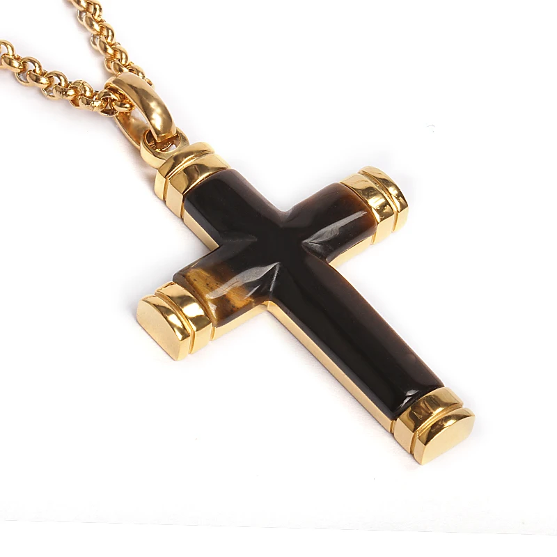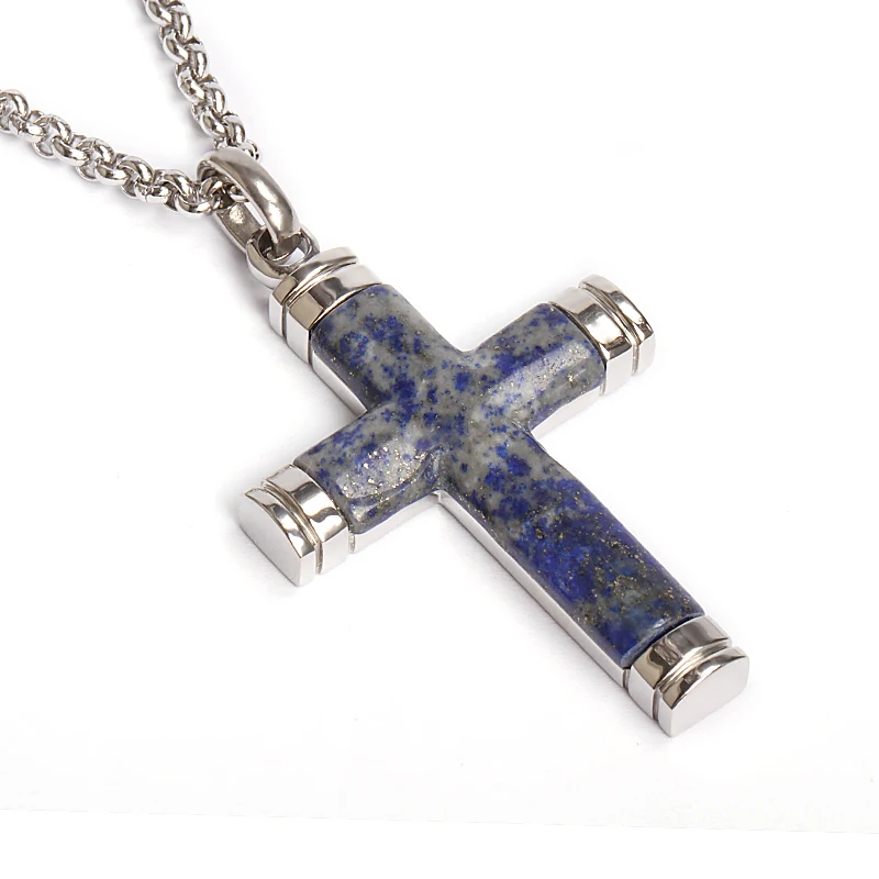 Men's Stainless Steel Christian Classic Cross Natural Gemstone Lapis Lazuli Necklace Customizable Charm Pendant