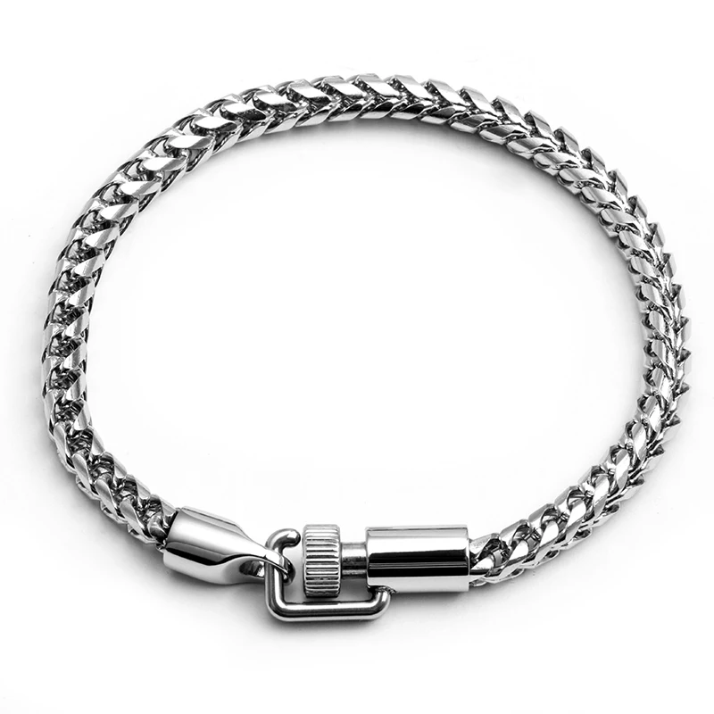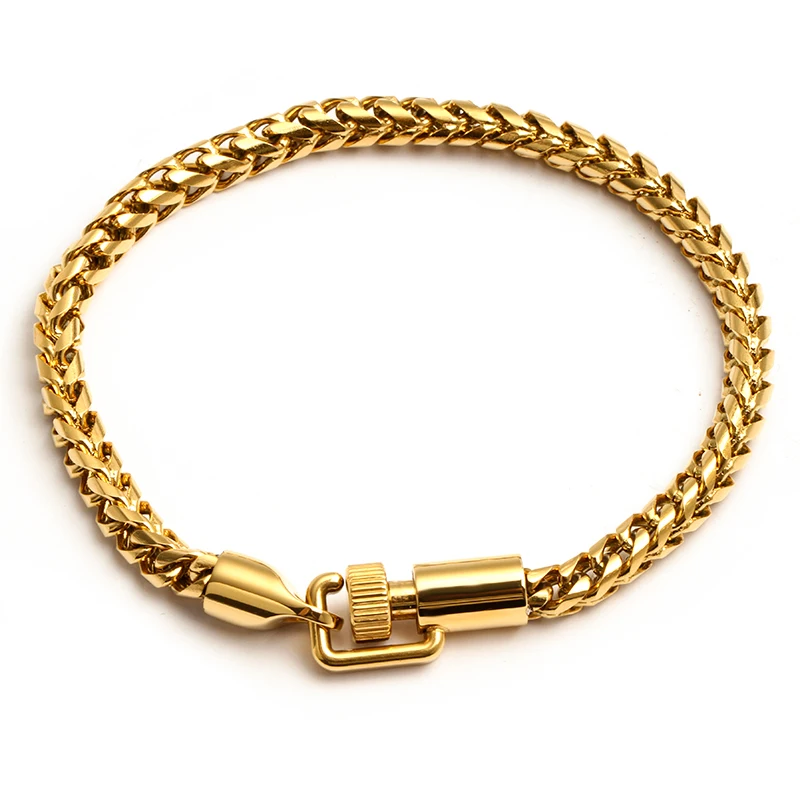 18K Yellow Gold Plated Stainless Steel Classic Charm Chain Button Buckle Unisex Bracelet for Anniversary