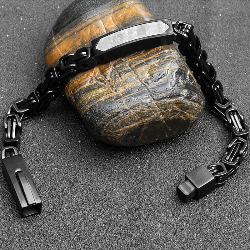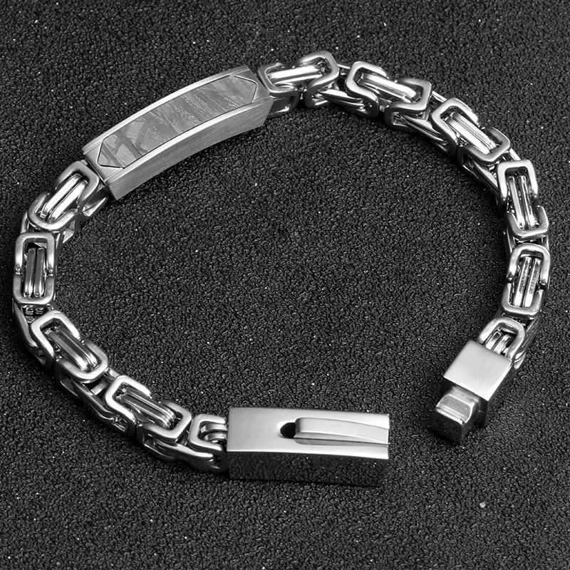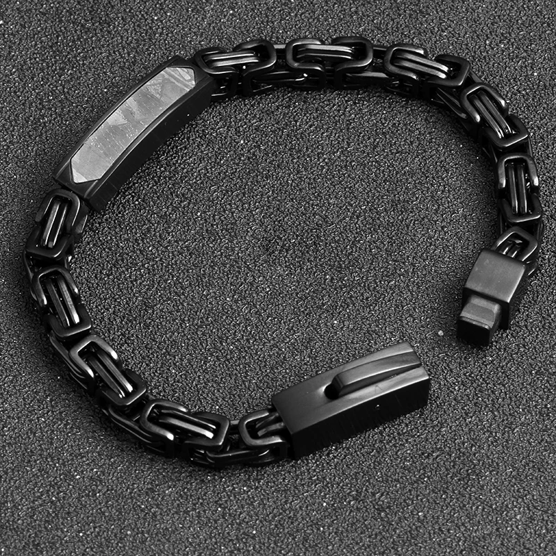 Fashion Men Jewelry Bracelet Stainless Steel Chain Necklace Genuine Meteorite Black Mens Bracelet