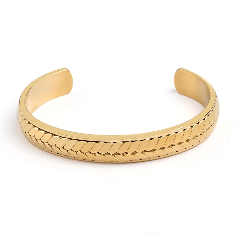 Customized Men's Two Tone Gold Silver Stainless Steel Fashion Jewelry Bracelet Handcuff Design Bangles