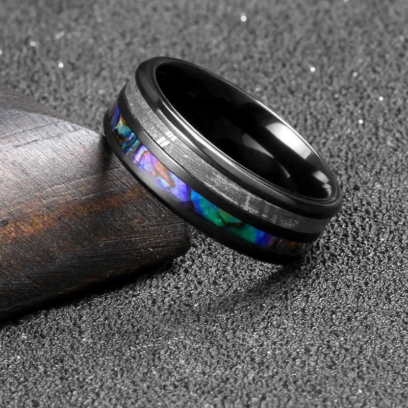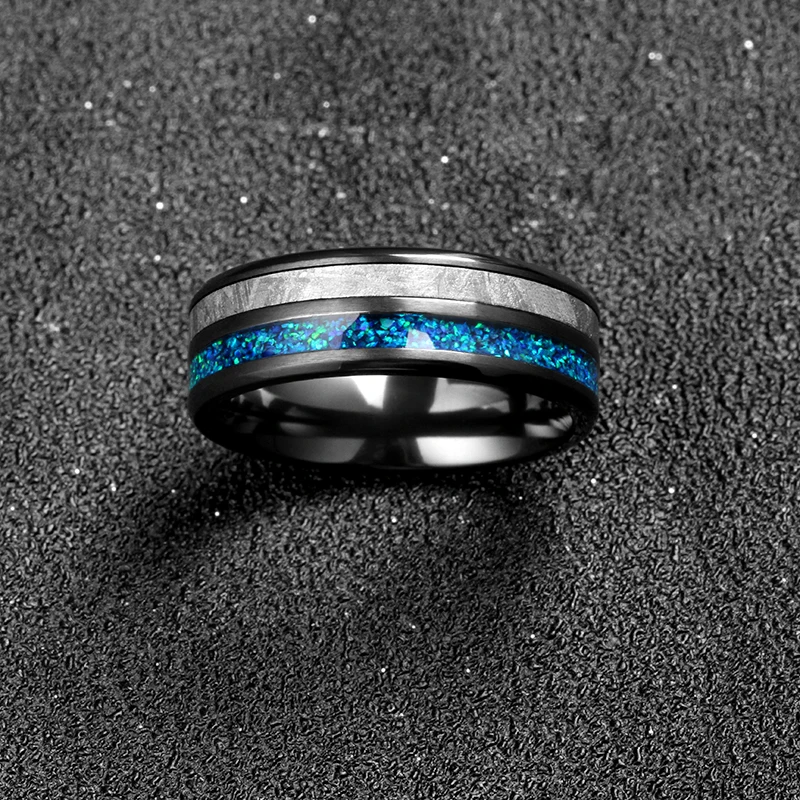 Zirconium Blue Opal Abalone Inlay Black Tungsten Titanium Meteorite Wedding Ring for Fashionable Eternity Trendy Bands