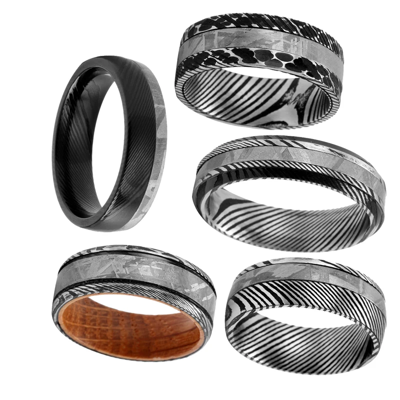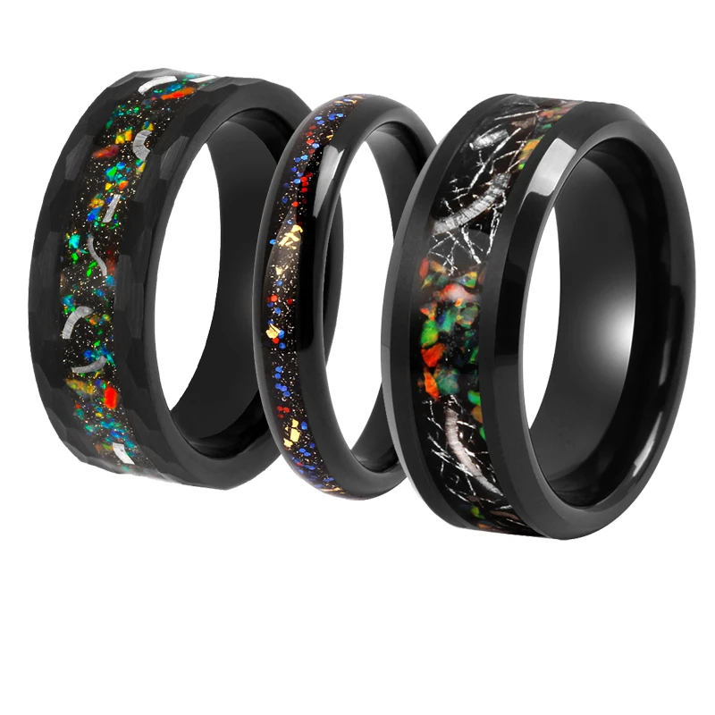 Meteorite Black with Gold Foil Flakes Real Crushed Meteorite Trendy Style Hammered Tungsten Ring Wedding Band